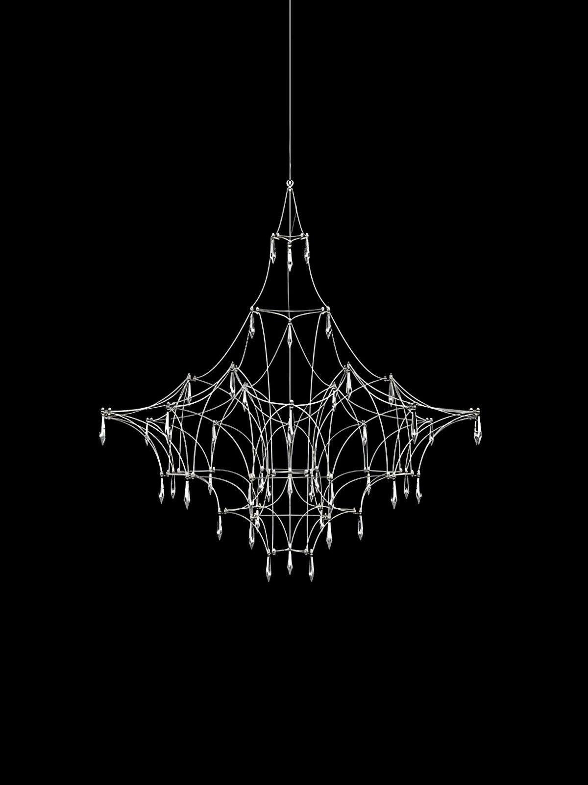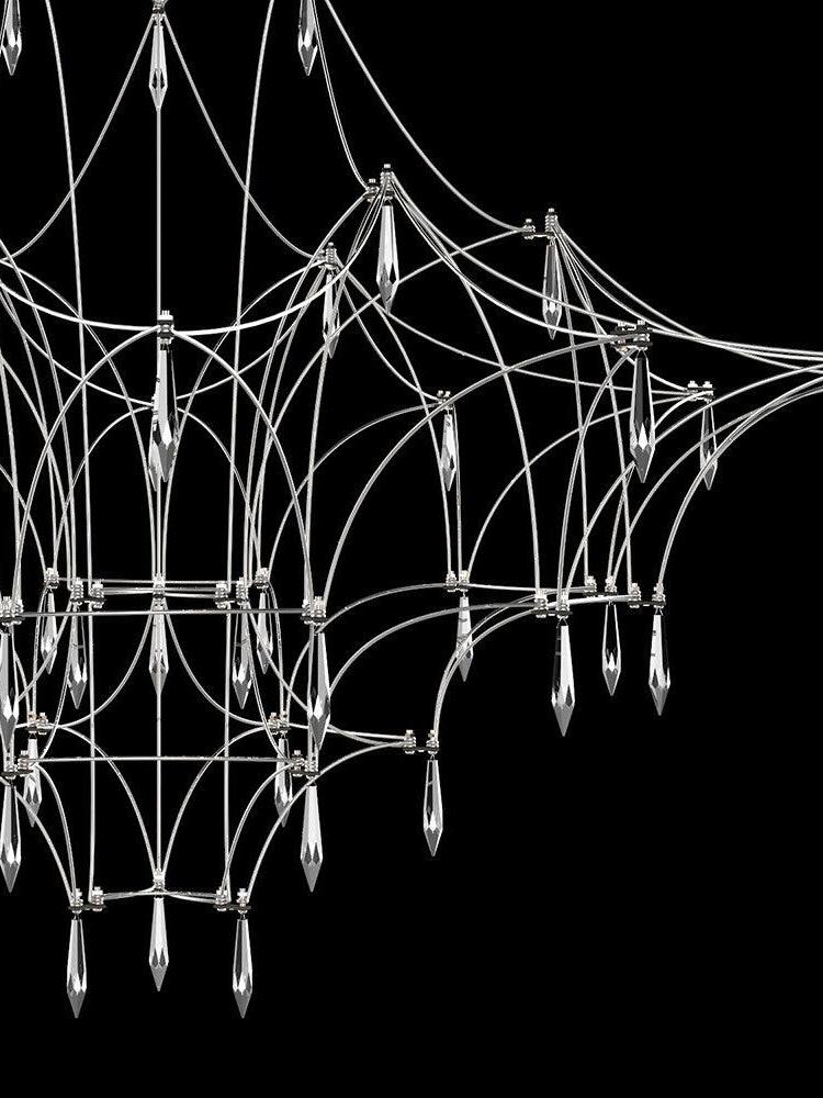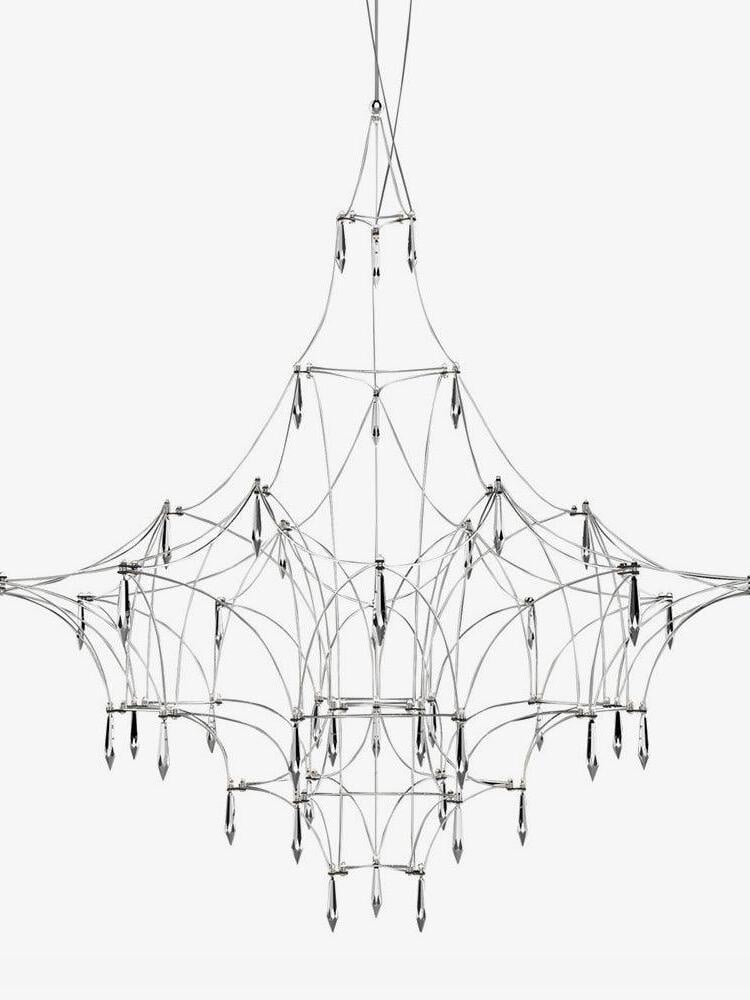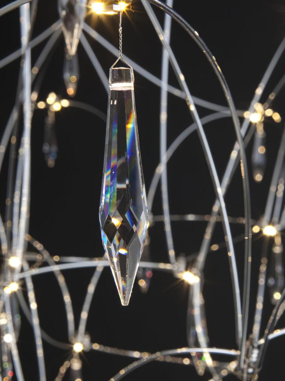 Ein Lichtermeer aus kleinen Sternen. Der Trend setzende Designer fertigt diese Leuchte aus langlebigem Edelstahl und Kristall. Die gewählten Materialien lassen diese Leuchte trotz ihrer Robustheit und Widerstandsfähigkeit wie ein Lichternetz erscheinen. Die aufwendig eingesetzten Kristalle brechen und reflektieren das Licht der zahlreichen kleinen Leuchtmittel und erzeugen so ein faszinierendes Lichtspiel.