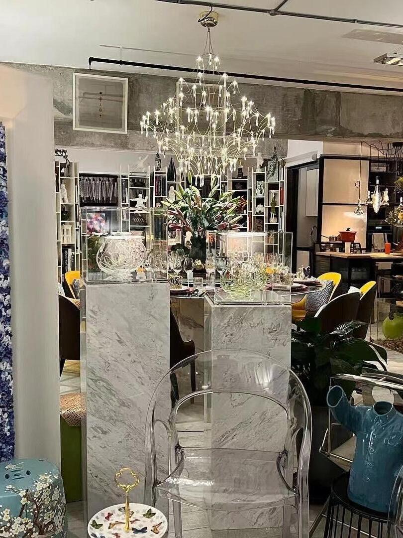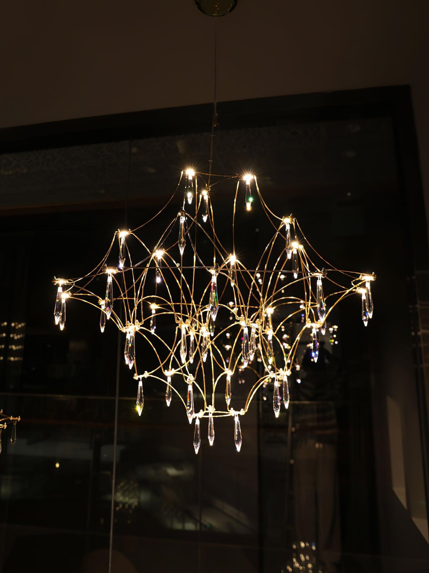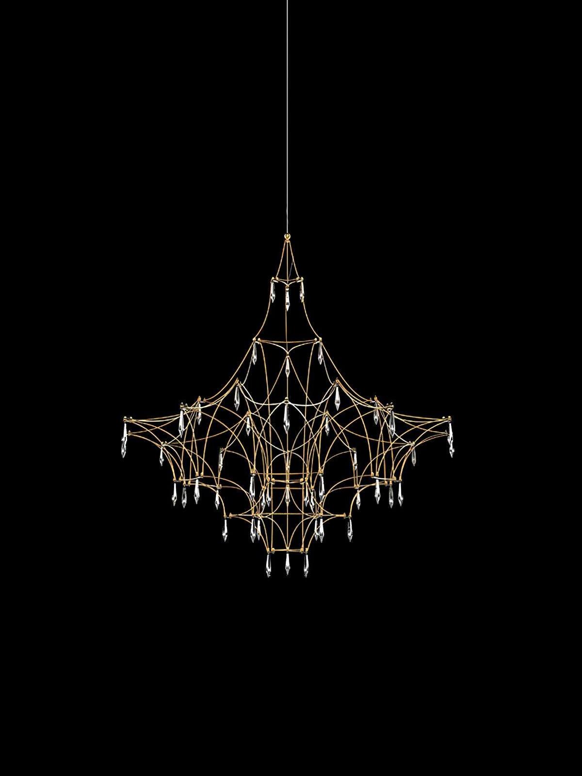 Ein Lichtermeer aus kleinen Sternen. Der Trend setzende Designer fertigt diese Leuchte aus langlebigem Edelstahl und Kristall. Die gewählten Materialien lassen diese Leuchte trotz ihrer Robustheit und Widerstandsfähigkeit wie ein Lichternetz erscheinen. Die aufwendig eingesetzten Kristalle brechen und reflektieren das Licht der zahlreichen kleinen Leuchtmittel und erzeugen so ein faszinierendes Lichtspiel.