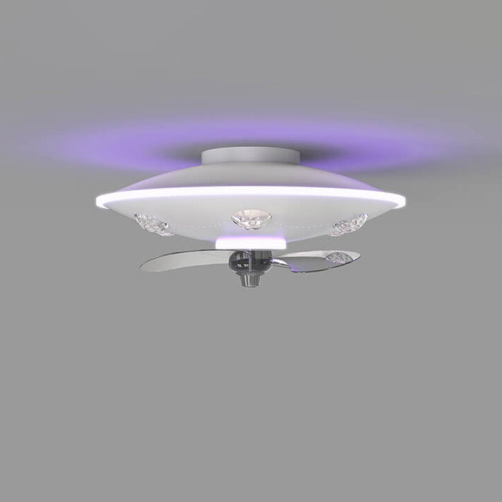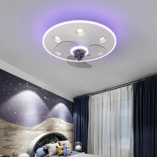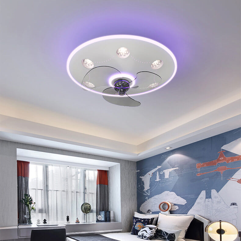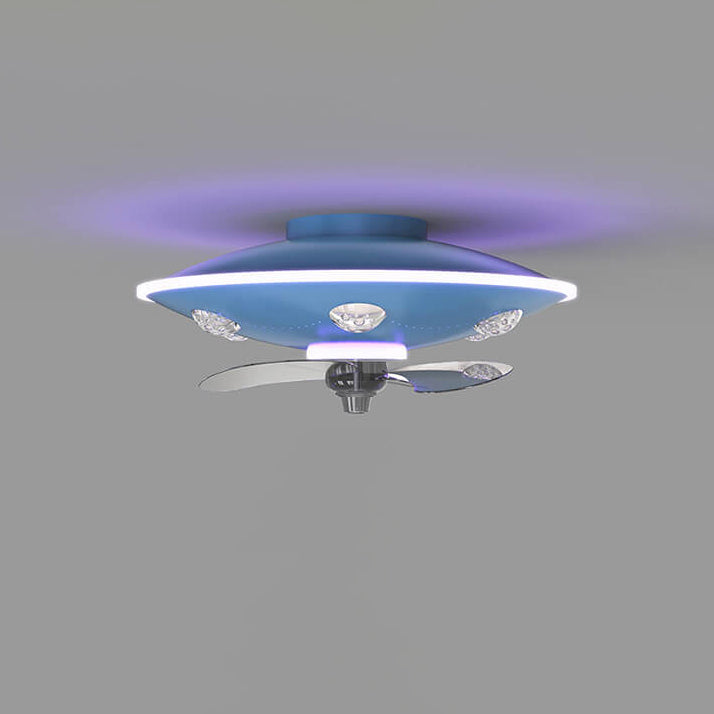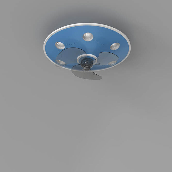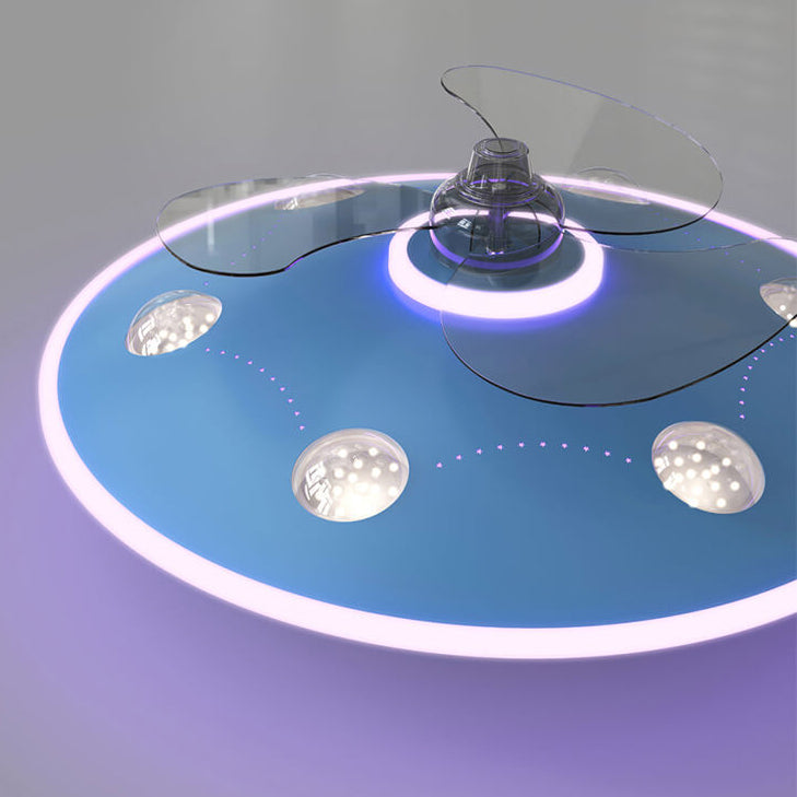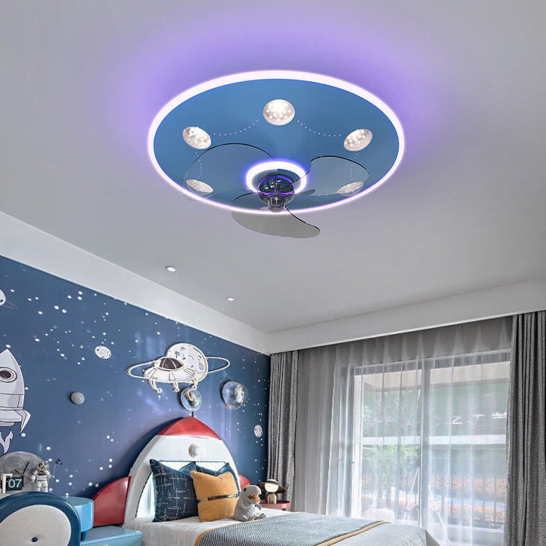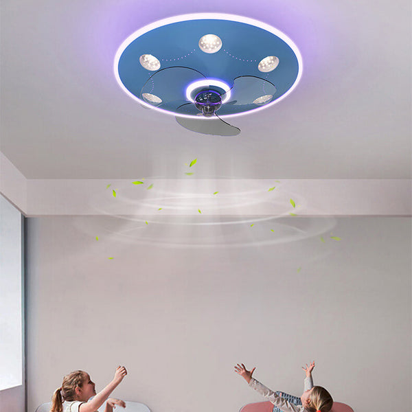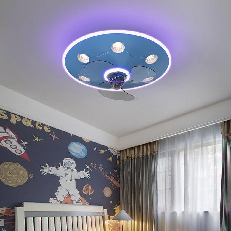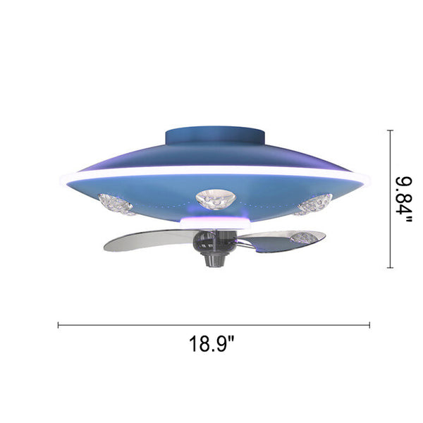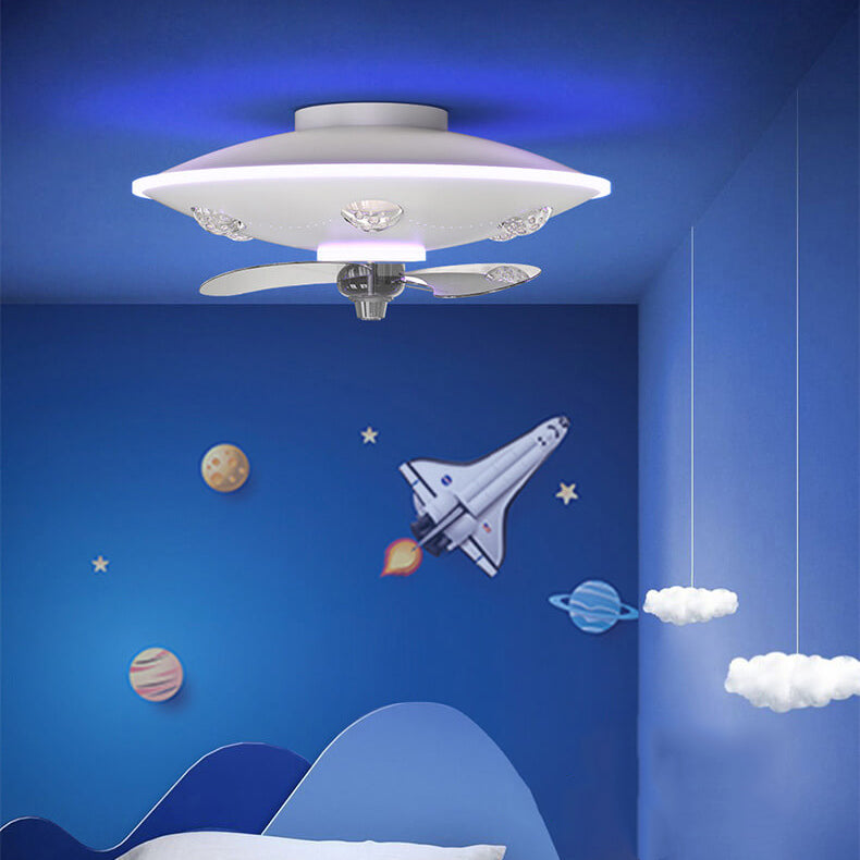 Modern Creative Cartoon UFO flying Saucer Round Iron Acrylic LED Kids Flush Mount Ceiling Fan Light
