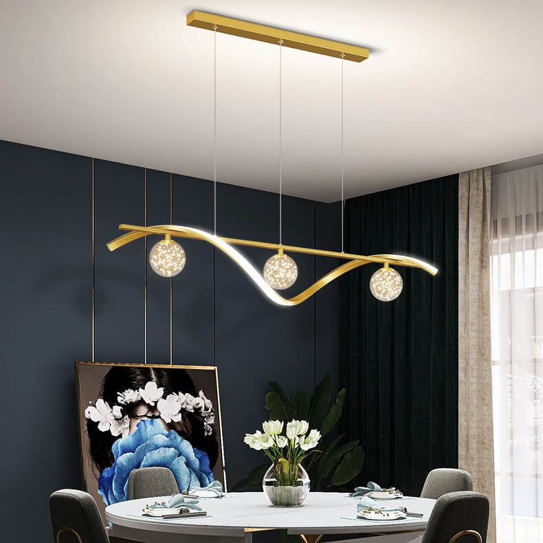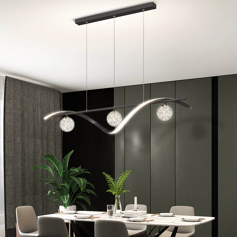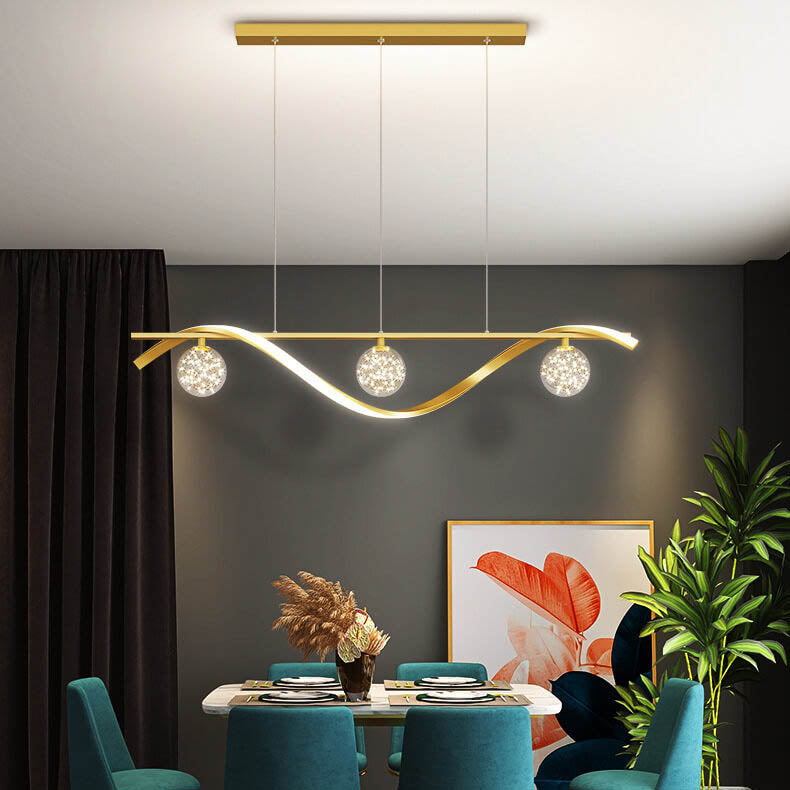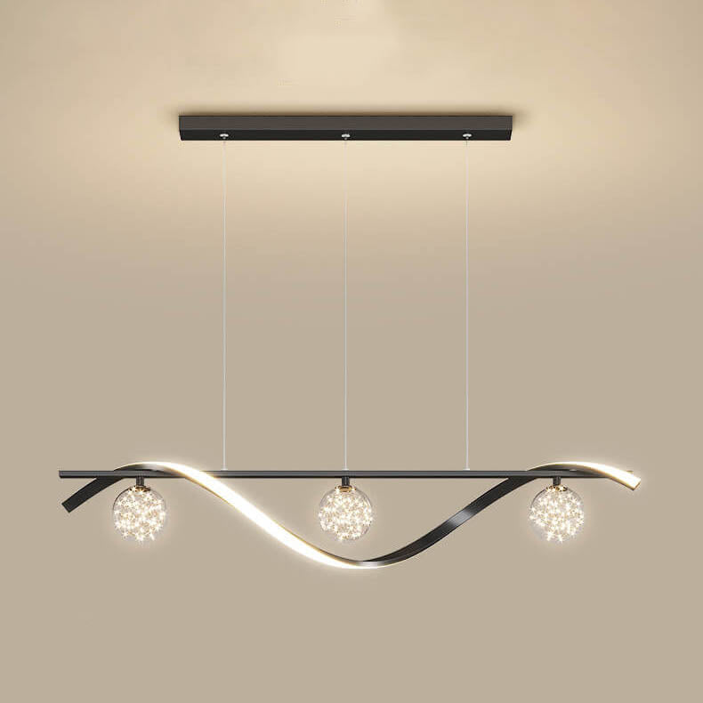 Modern Creative Curve Long Striped Glass Ball LED Chandelier
