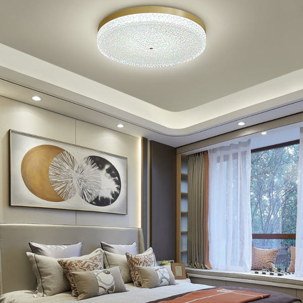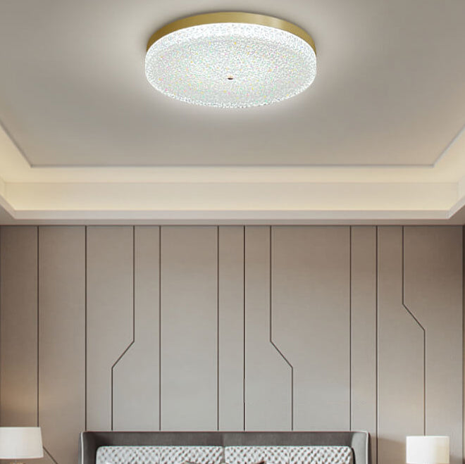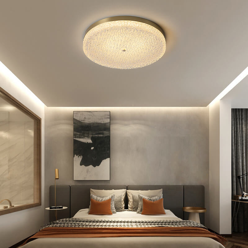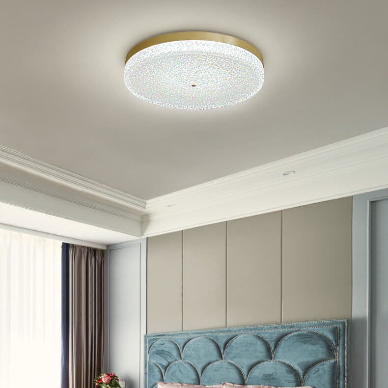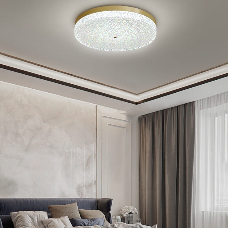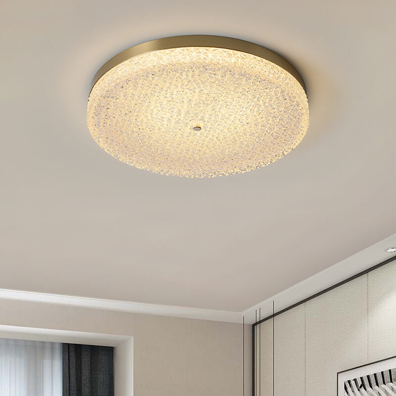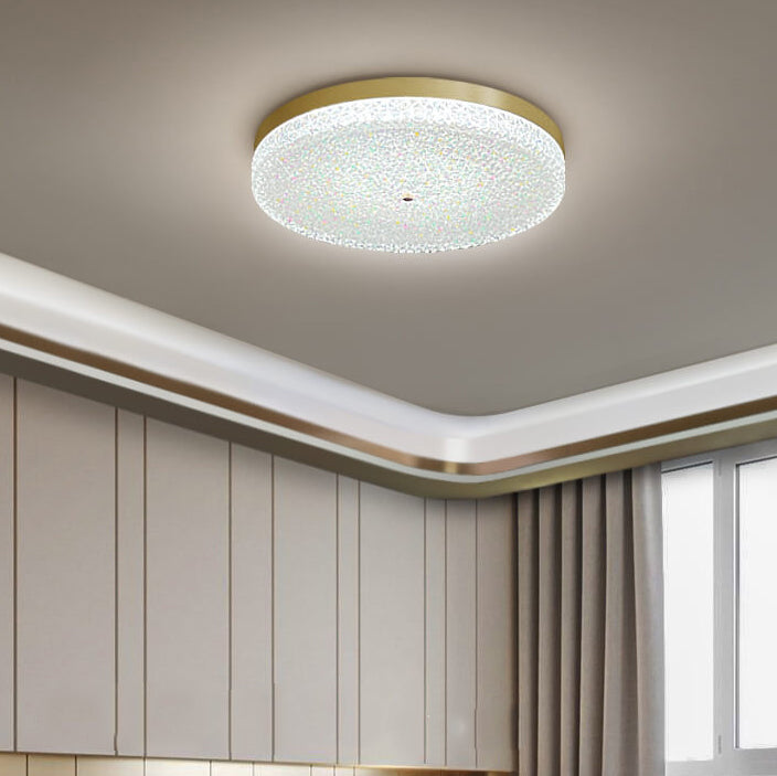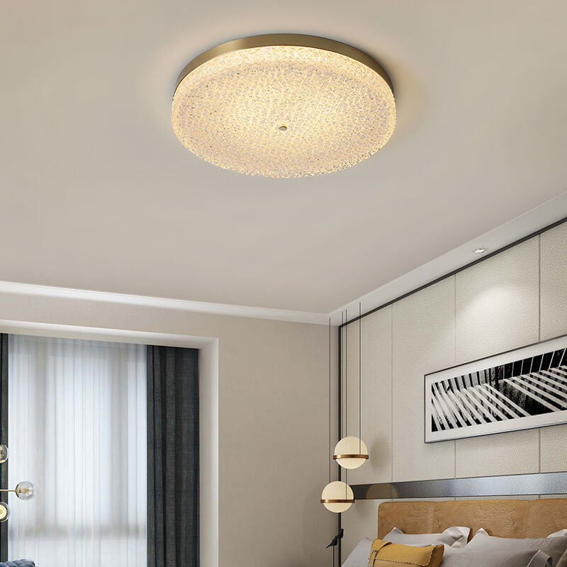 Modern Glass Brass Round LED Flush Mount Ceiling Light