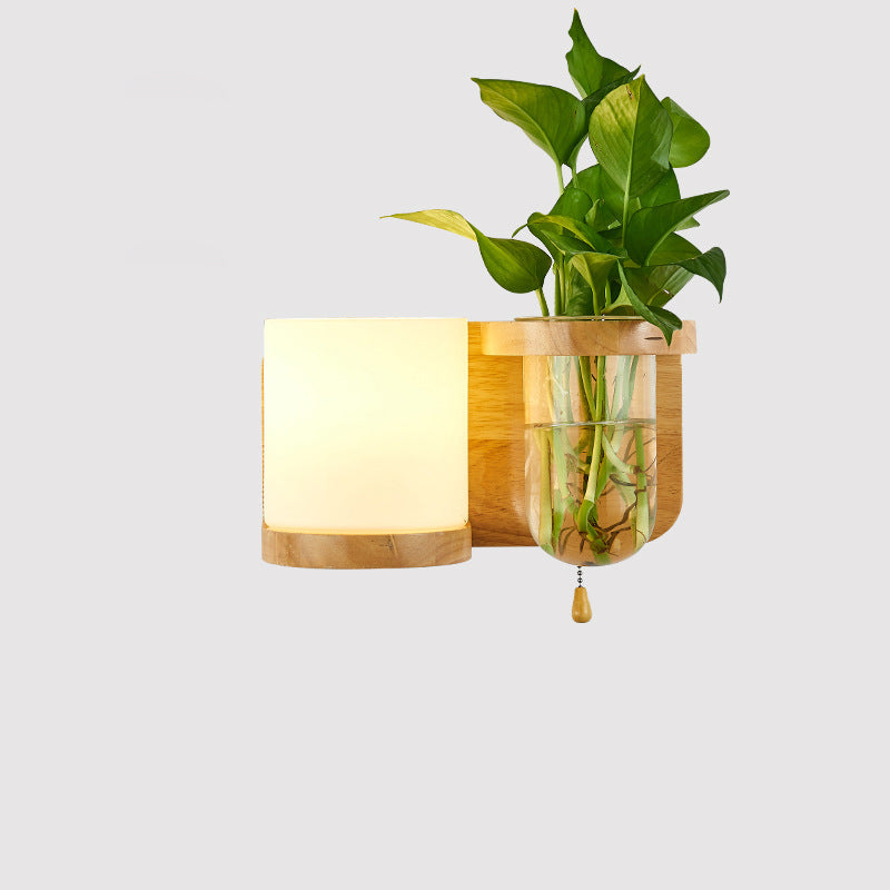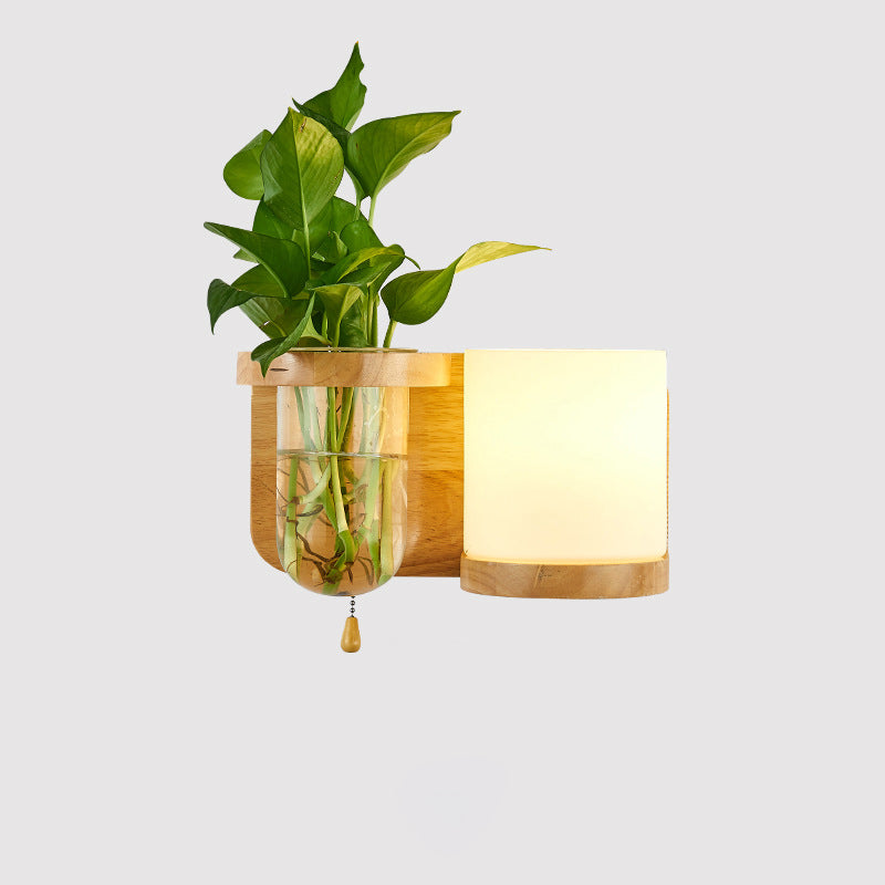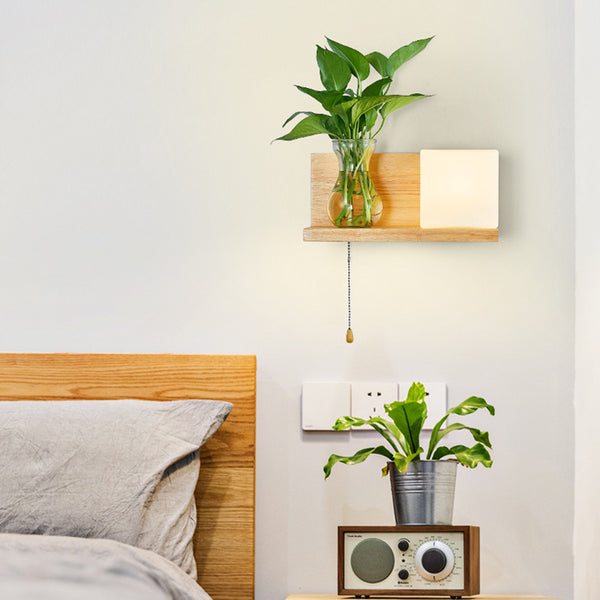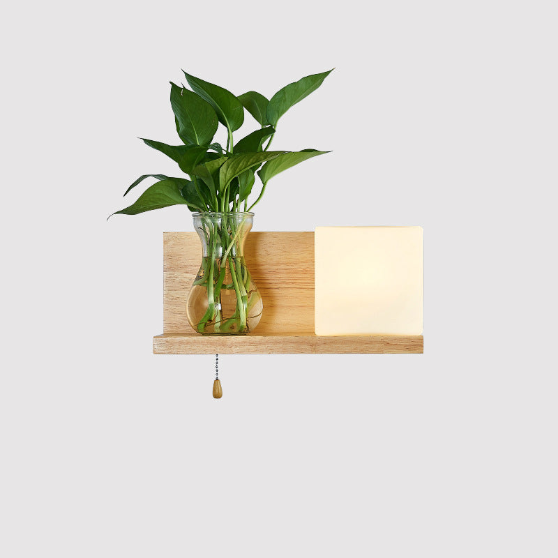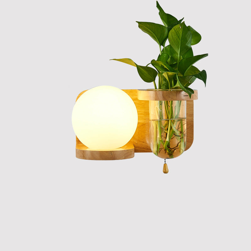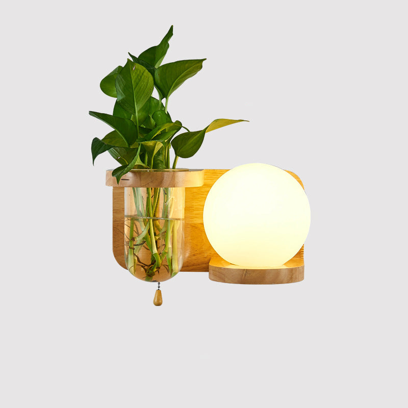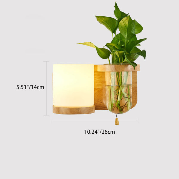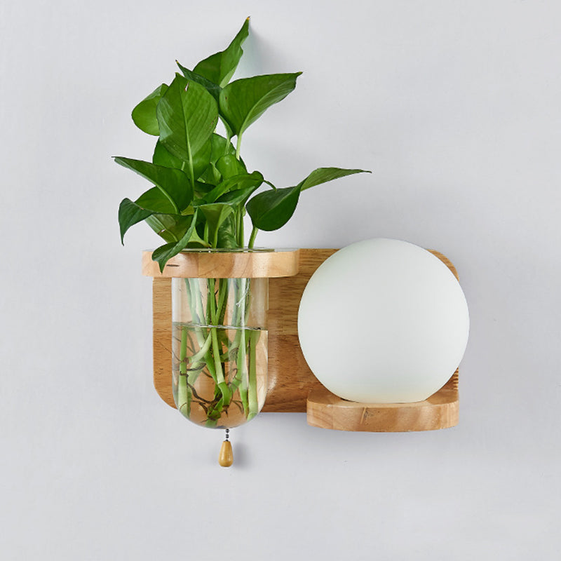 Modern Minimalist Rectangular Cylinder Orb Glass Wood 1-Light Wall Sconce Lamp For Living Room