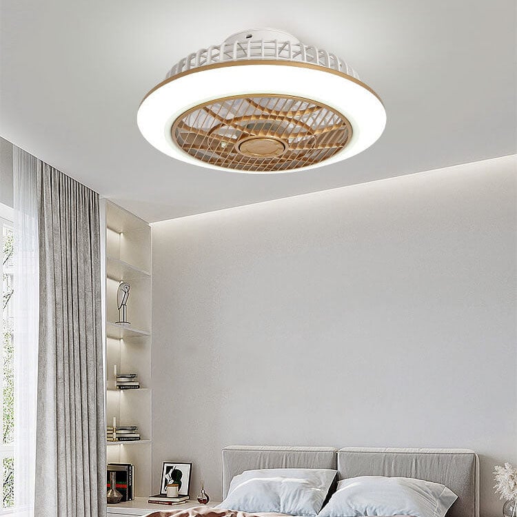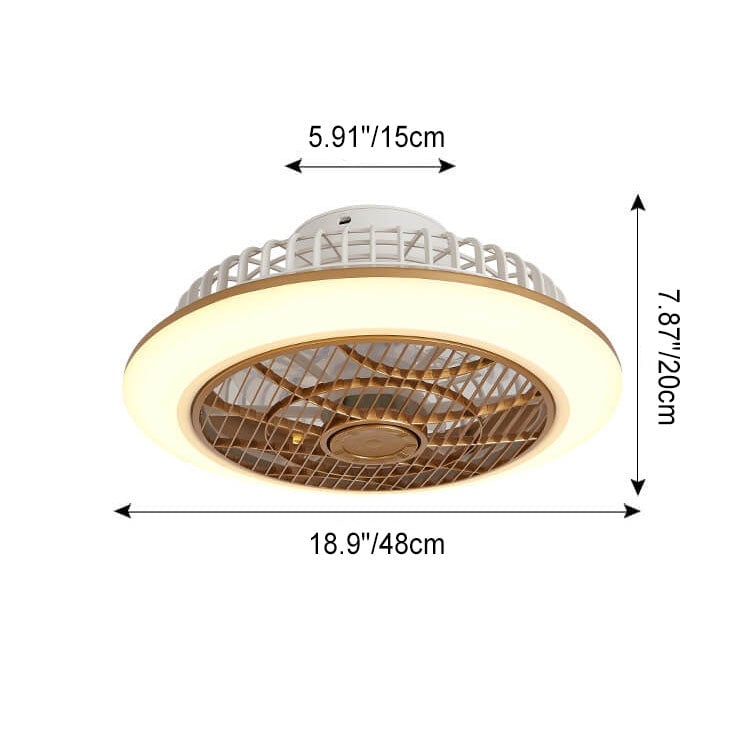 Modern Minimalist Round Cage Iron Acrylic LED Flush Mount Ceiling Fan Light