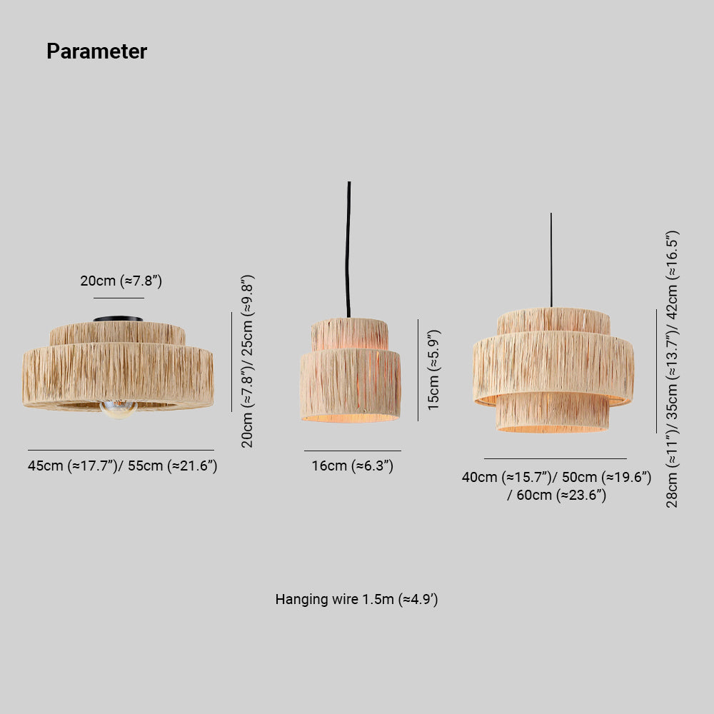 Muto Rustic Boho Rattan Pendant Light 3 Style Living Room