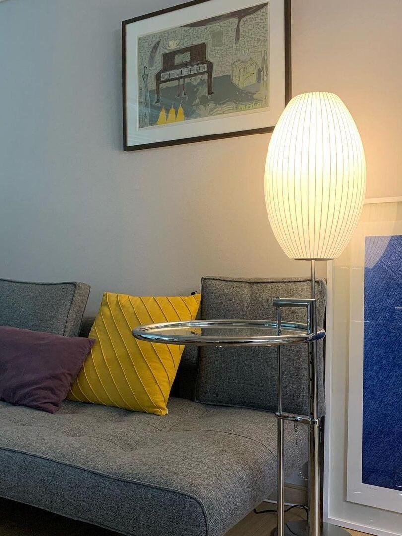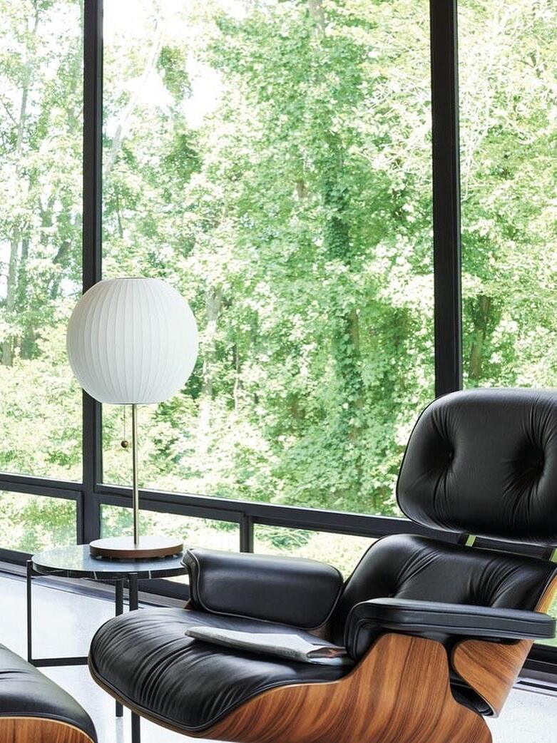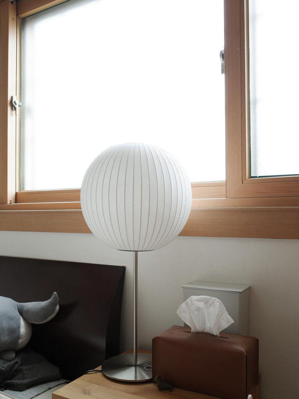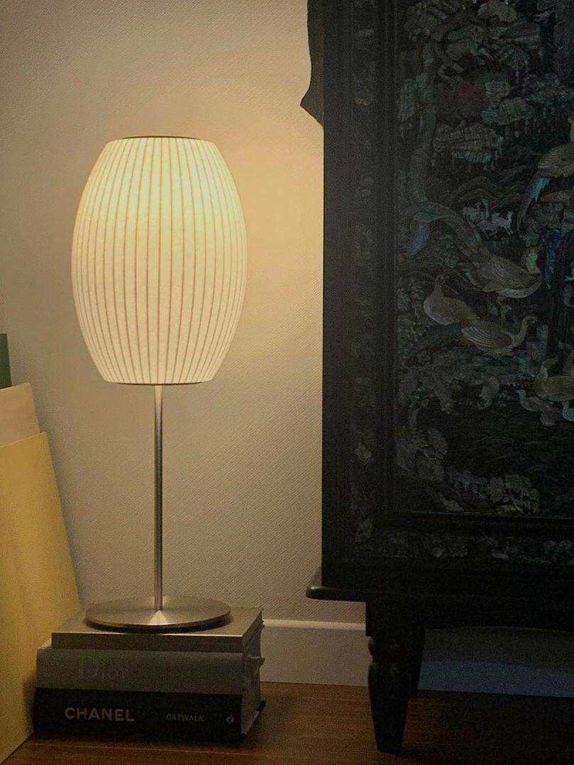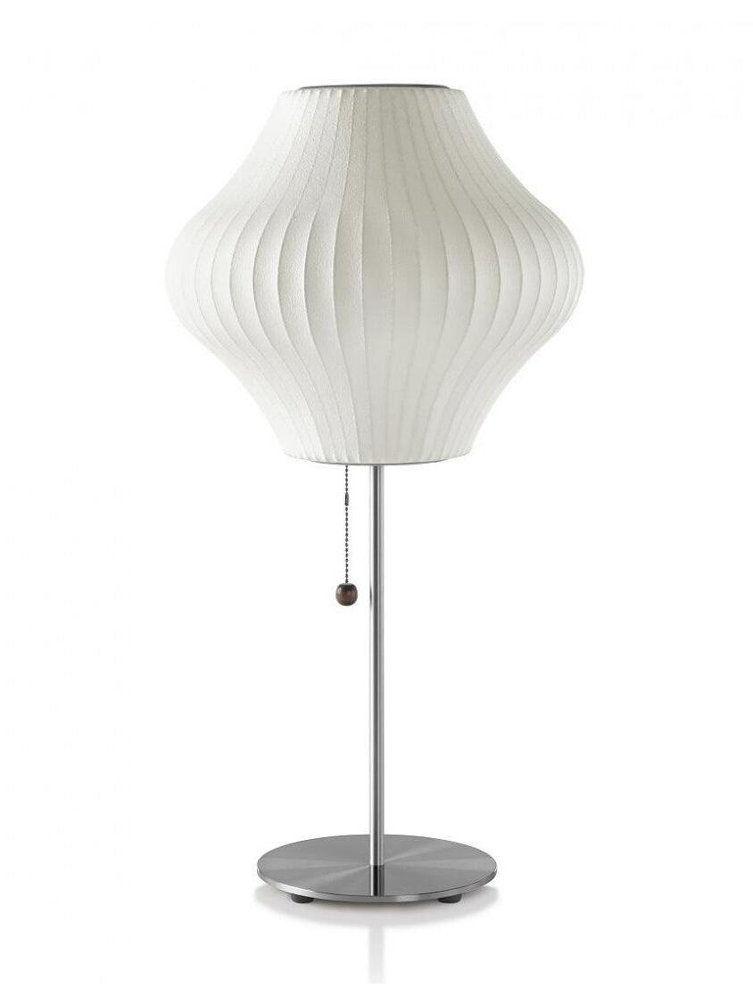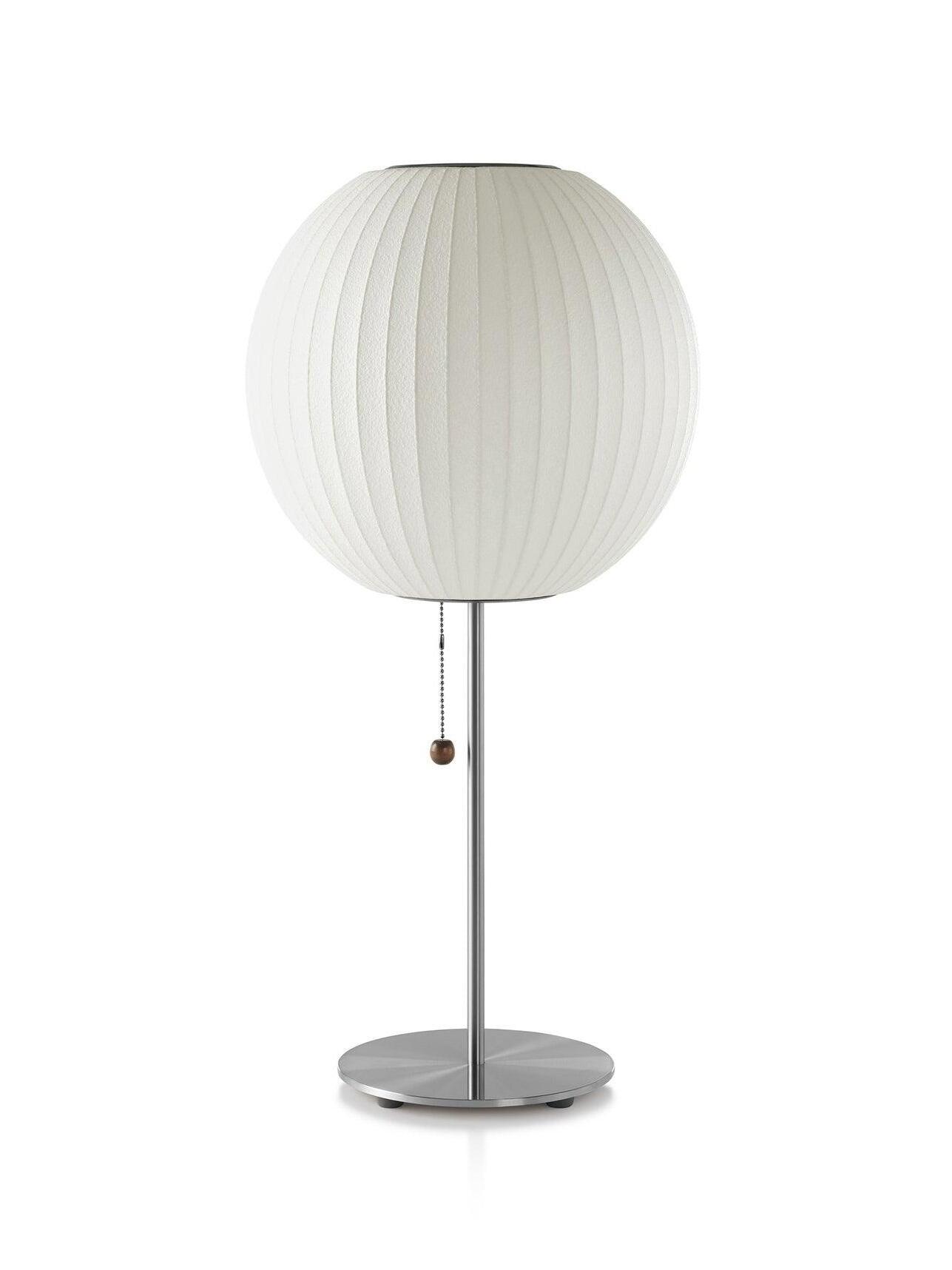 The Cigar Lotus Table Lamp brings this classic George Nelson design to a table setting. Its elegant lampshade is set on a steel base that is available with or without a walnut cover, and an easy-to-use on/off pull chain with a solid walnut end. The lamp also includes an 86-inch plug-in cord. The Nelson Bubble Lamps were first designed in 1952 when Nelson was inspired by set of Swedish hanging lamps. Their expensive price prompted Nelson to make his own set, and he arrived at an innovative process that replaced their silk shade with a translucent plastic material, making them available at a modest price.