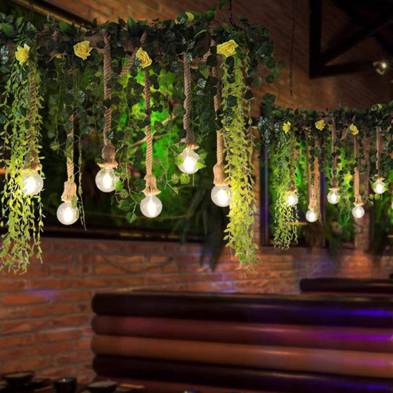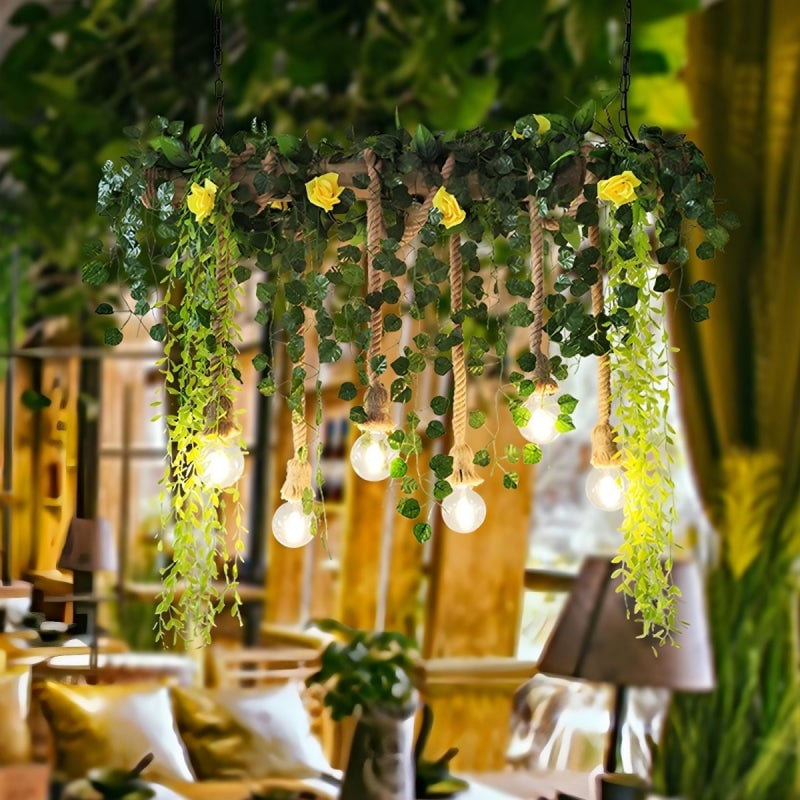 - This natural decorative pendant light is a harmonious blend of high quality metal, environmentally friendly hemp rope, realistic simulated greenery and delicate flowers. These carefully selected materials not only ensure durability, but also enhance aesthetic appeal.