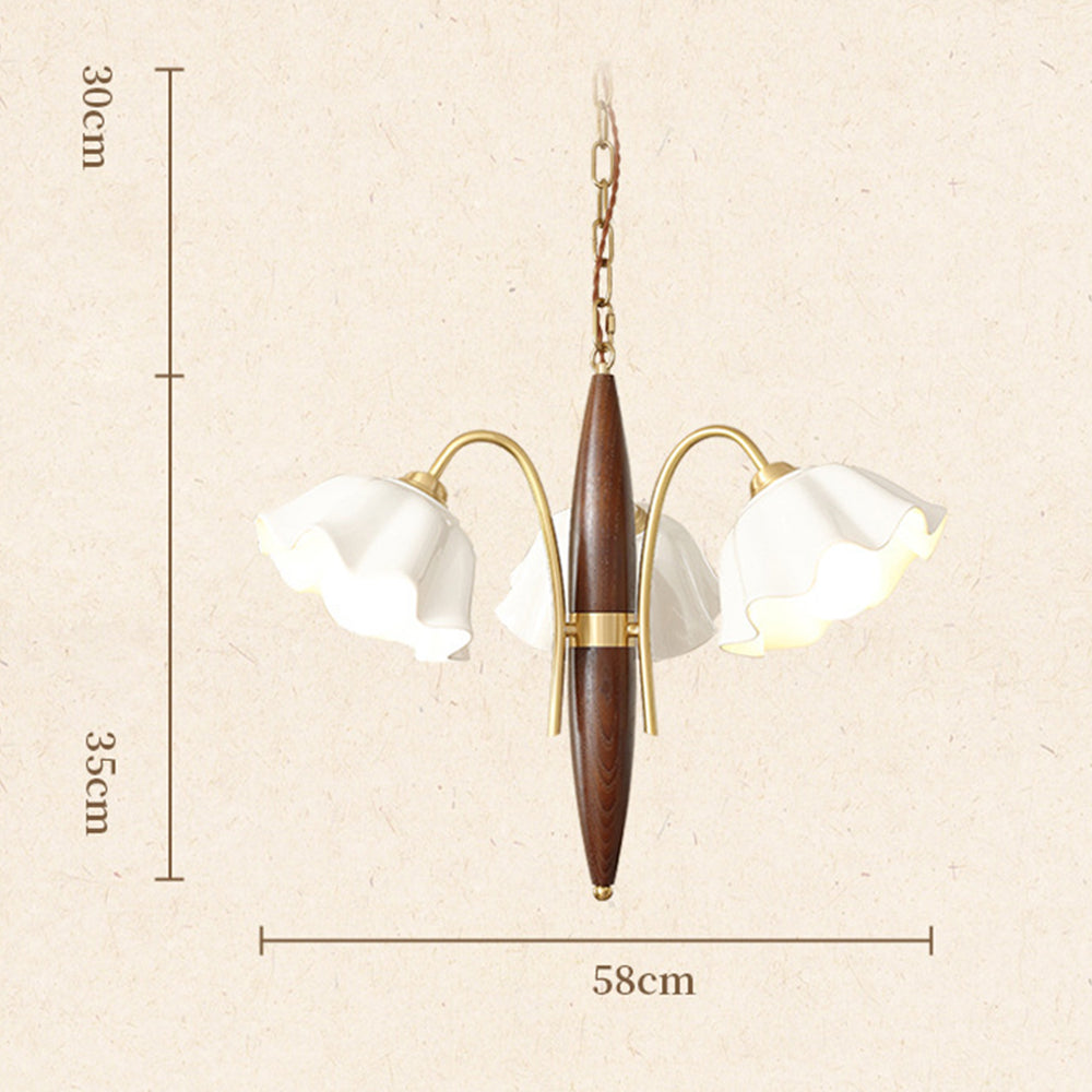 Embrace vintage charm with our Vintage Ceramic Flower Shape Hanging Light Walnut Brass Chandelier. Meticulously crafted, this fixture seamlessly merges nostalgic allure with modern detailing. The flower-shaped ceramic design in walnut and brass accents add a touch of warmth, casting a radiant and enchanting glow.