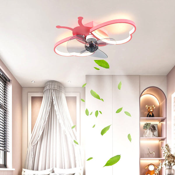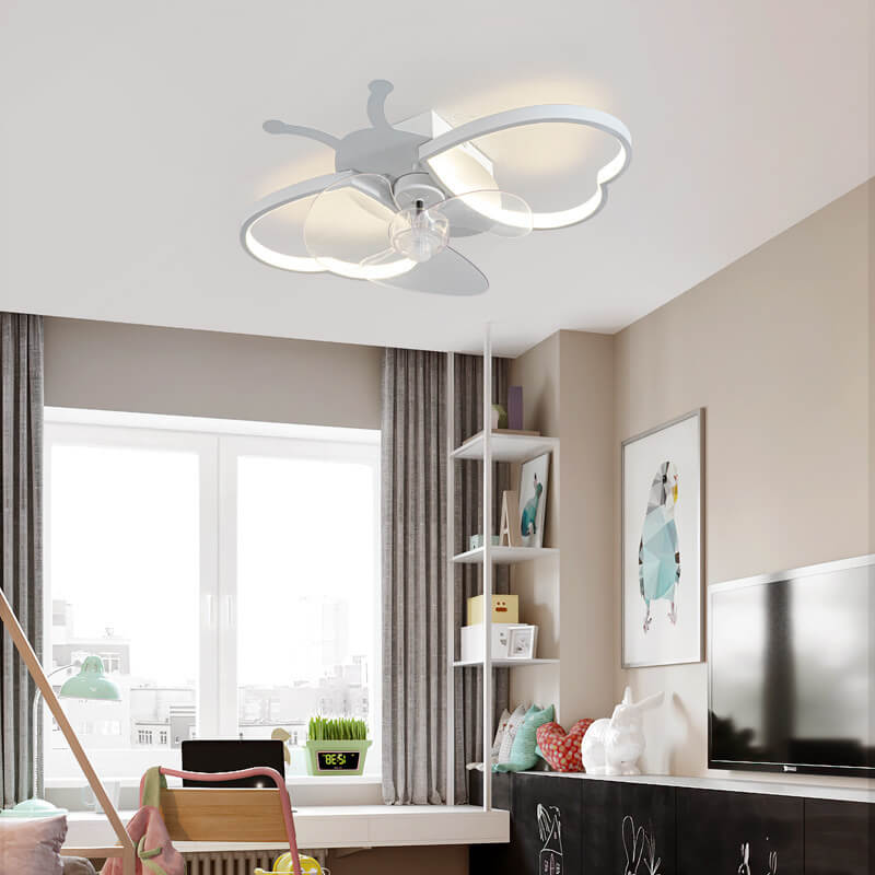 Nordic Creative Silicone Butterfly Shape LED Flush Mount Ceiling Fan Light