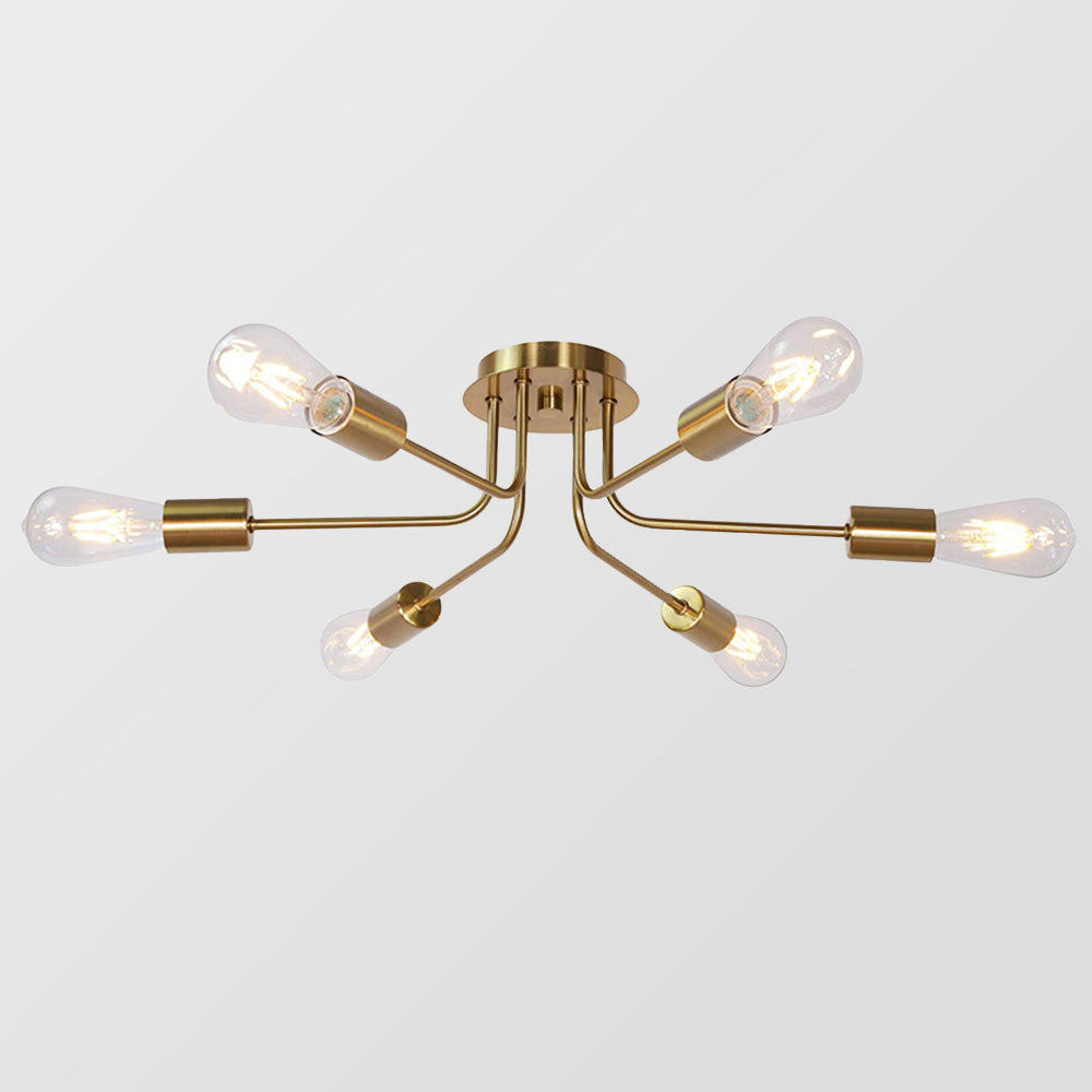 Modern 6-Light Gold Glass Semi Flush Chandelier