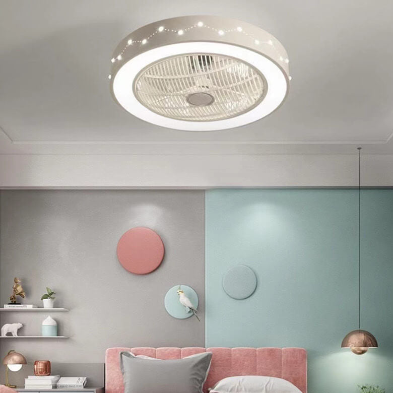 Nordic Simple Round Galaxies Enclosed LED Flush Mount Ceiling Fan Light
