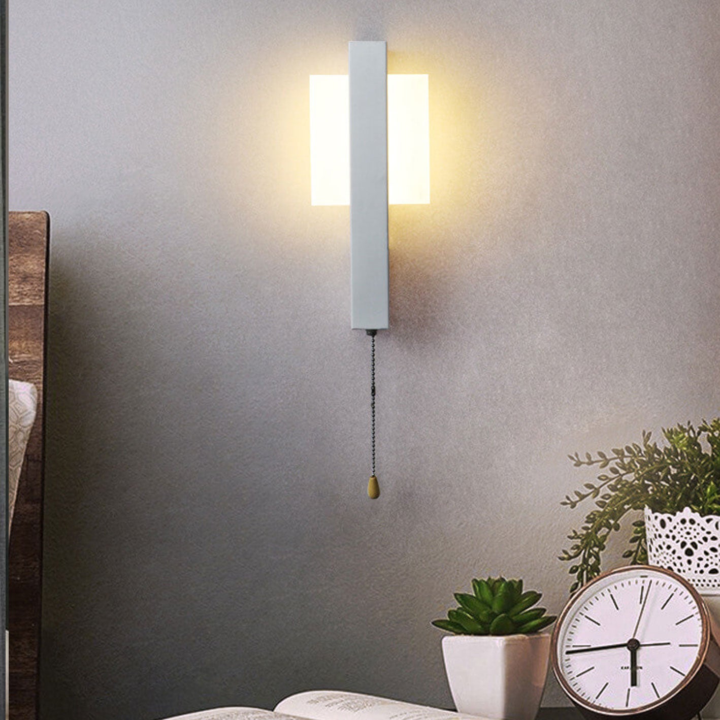 Nordic Simple Wrought Iron Acrylic Pull Wire Switch LED Wall Sconce Lamp