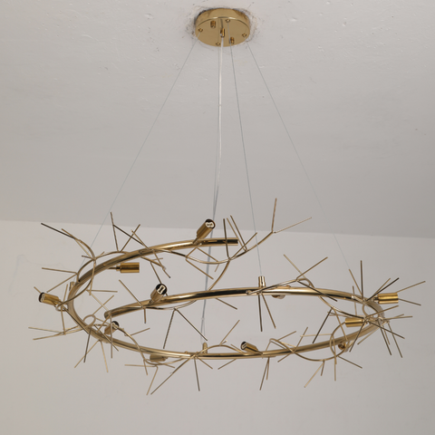 - Immerse yourself in the mesmerizing dance of elegance embodied by the Olivia Chandelier's round swirling shape. Like a graceful waltz frozen in time, the chandelier's design captivates with its fluidity and balance. The swirling motion is not just a visual feast; it's a sculptural expression that transcends the ordinary. Witness the seamless integration of art and functionality as the chandelier's curves enchant and inspire, turning your space into a haven of aesthetic delight.