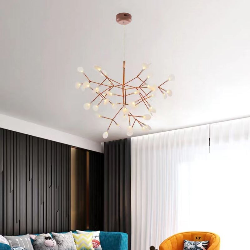 - Breathe life into your room with the sputnik-inspired design of our chandelier. Picture a cosmic burst of light that resembles the enchanting glow of fireflies. The distinctive shape of this lighting masterpiece adds a touch of celestial allure, turning your ceiling into a captivating canvas of radiance. Revel in the dynamic and contemporary aesthetics that this unique shape brings to your home.