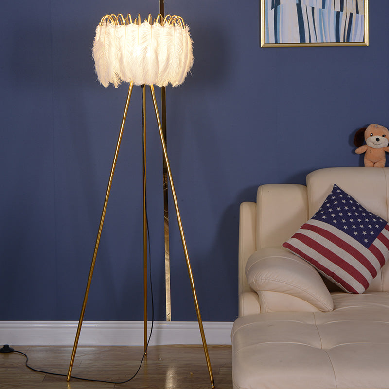 O'Moore Artistic Tripod Feather Floor Lamp, White