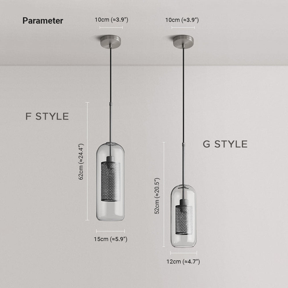 - Witness a play of light and aesthetics as this pendant light's prototypical glass shade and exquisitely crafted cylindrical interior come together to form an artistic masterpiece. Even during daylight hours, its presence stands as a visual highlight, enhancing the beauty of your surroundings in a subtle yet captivating manner.