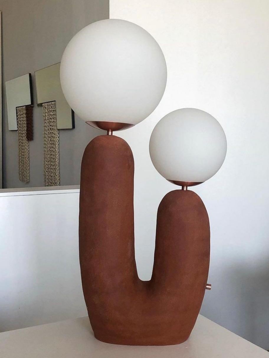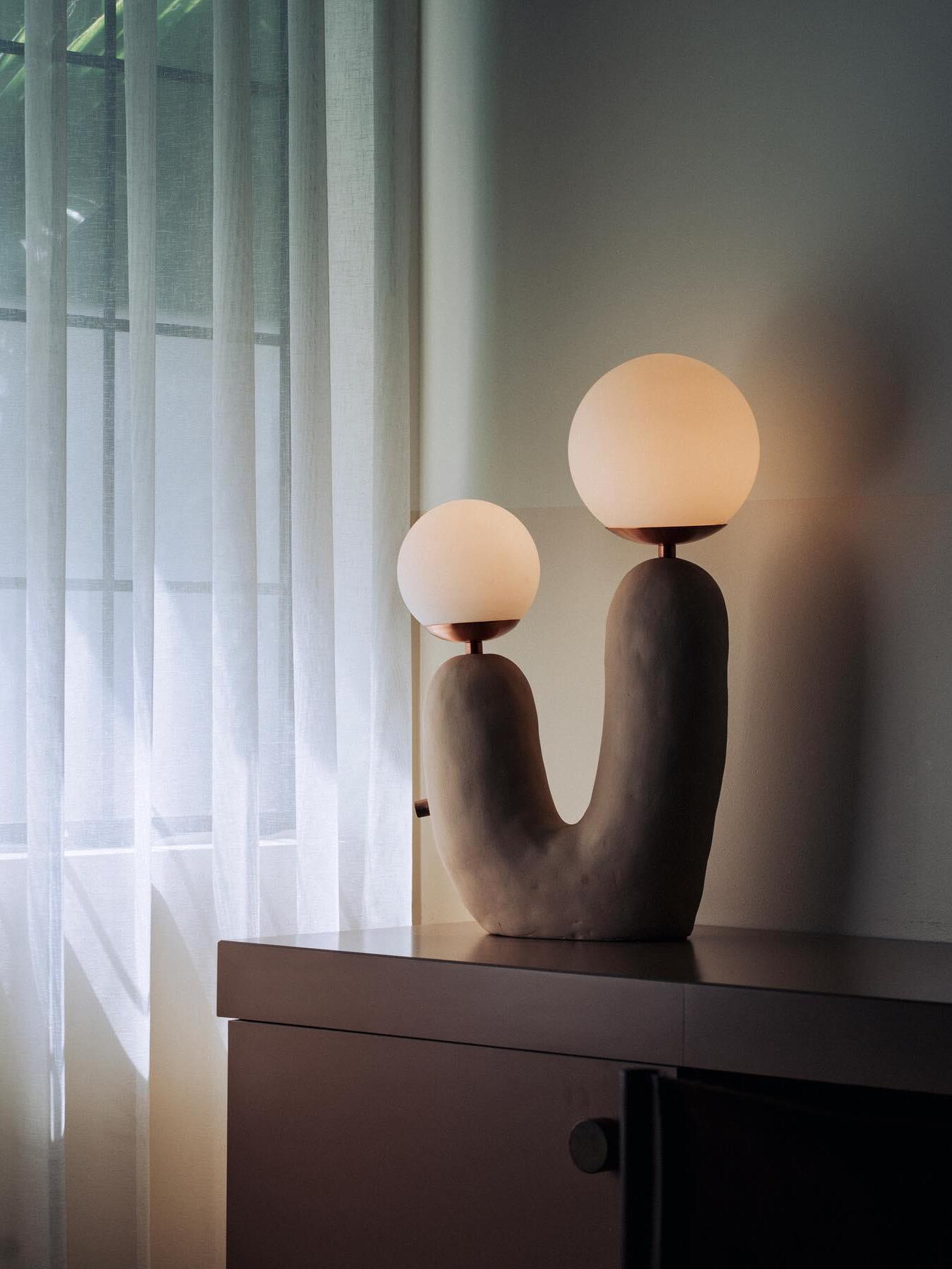 The enchanting Macaroon Oo Ceramics Cactus Table Lamp, a whimsical blend of botanical charm and artisanal craftsmanship. This delightful lighting piece features a handcrafted ceramic cactus base adorned with vibrant macaroon-inspired hues, elevating any space with its playful yet elegant aesthetic.