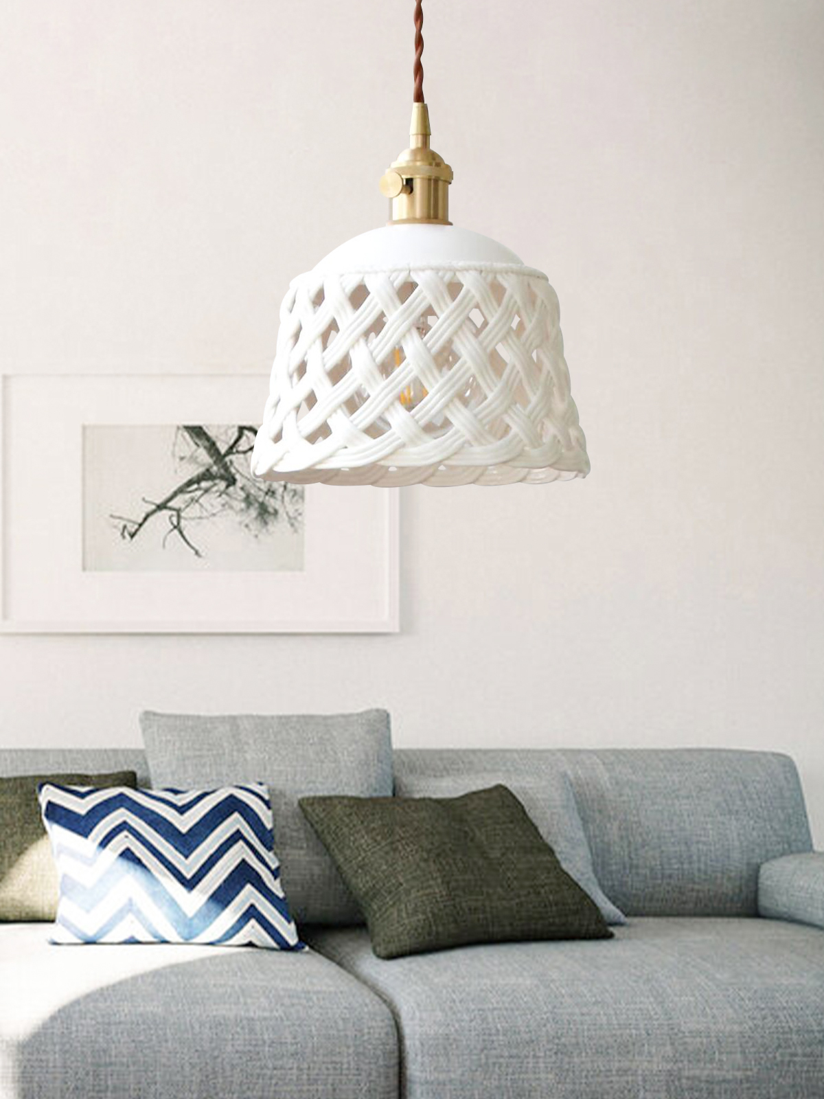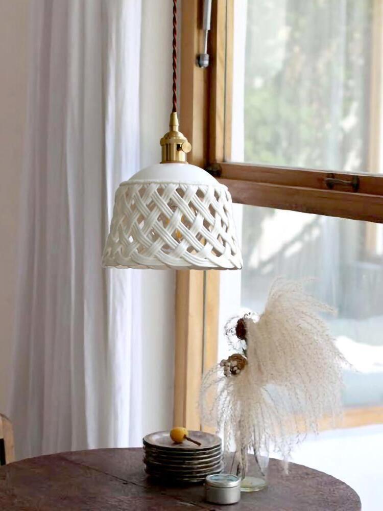 Stylish Ceramic Openwork Woven Pendant Lamp