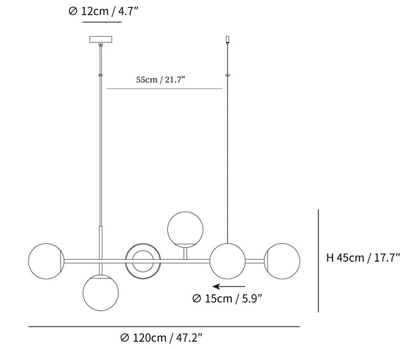 59″ Adjustable hanging height cable, which can be lengthened as required.