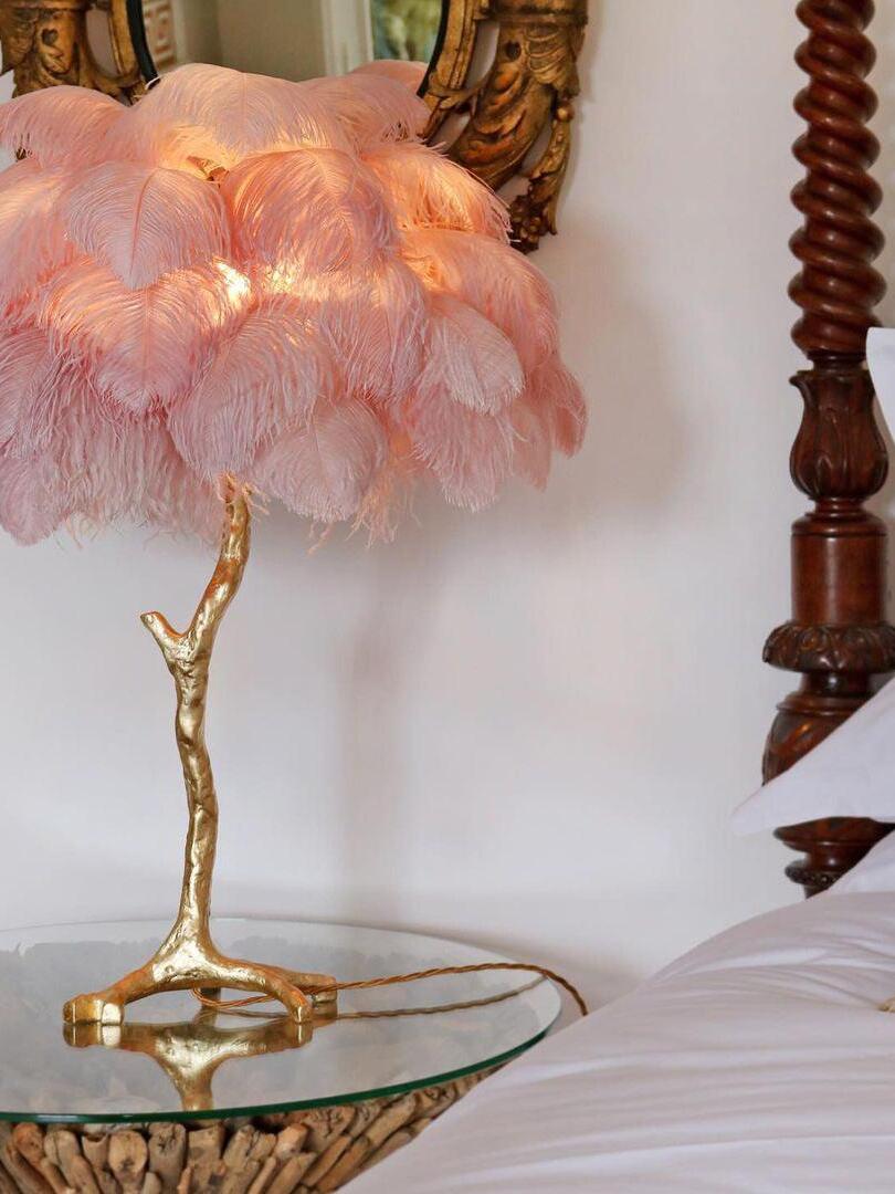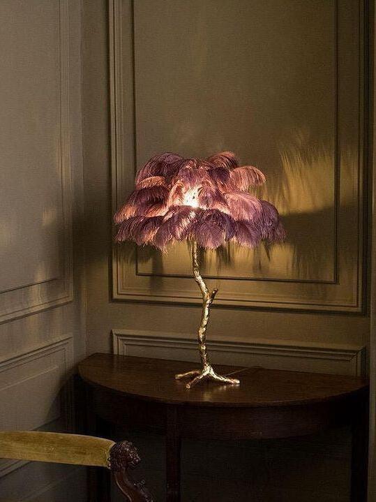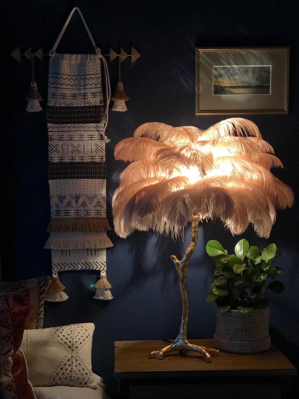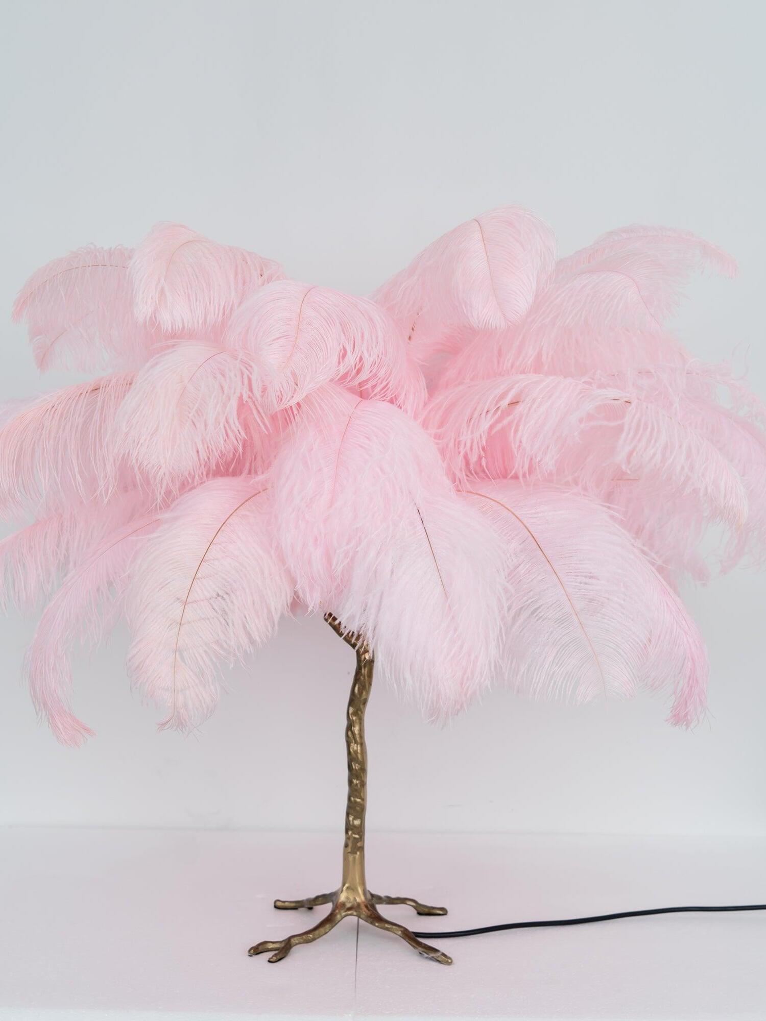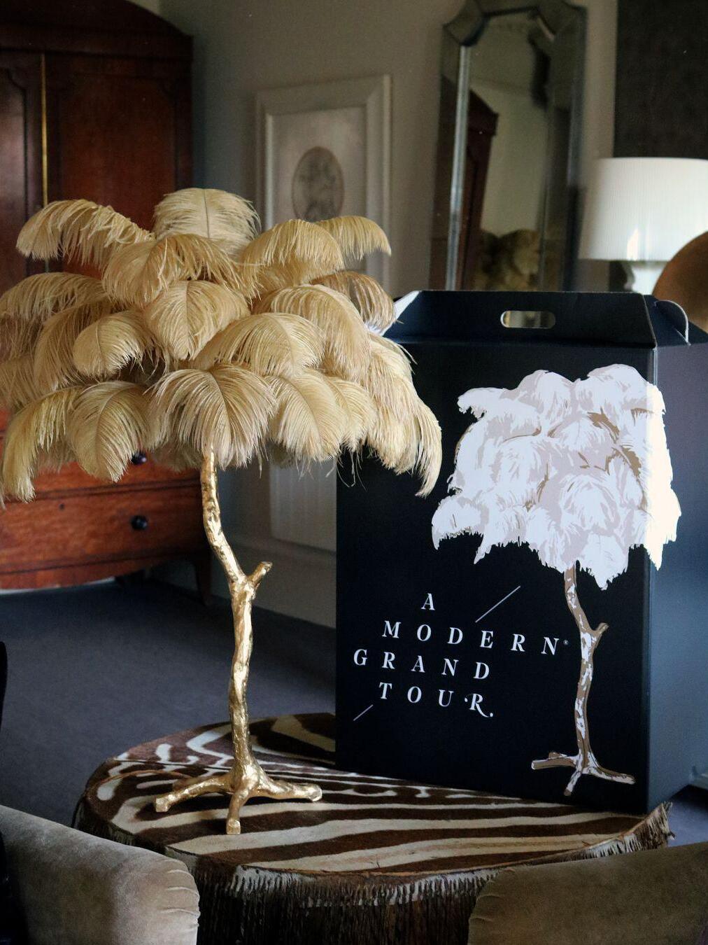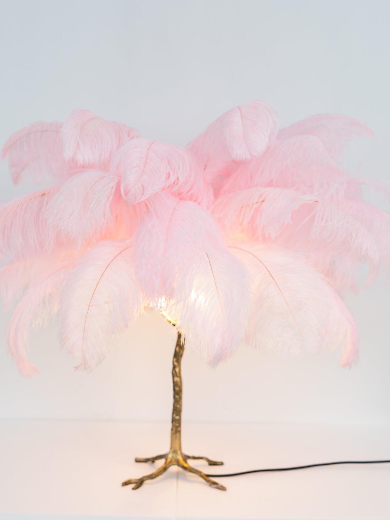 An illuminating palm tree, resplendent with exquisite ostrich feather foliage, the feather table lamp takes centre stage in any luxury setting and delivers the ultimate midas touch to Hollywood regency decors. this lighting work of art commands attention to its exquisite design and intricate craftsmanship.