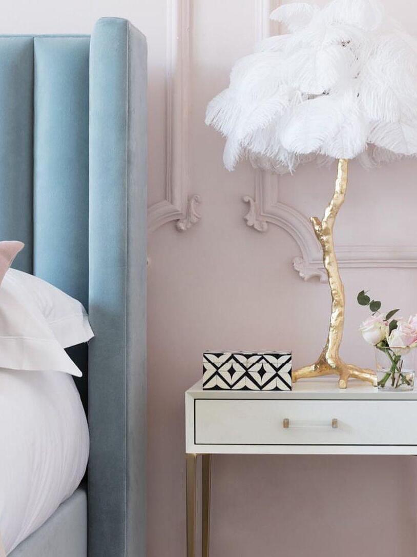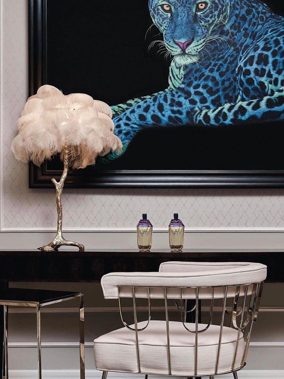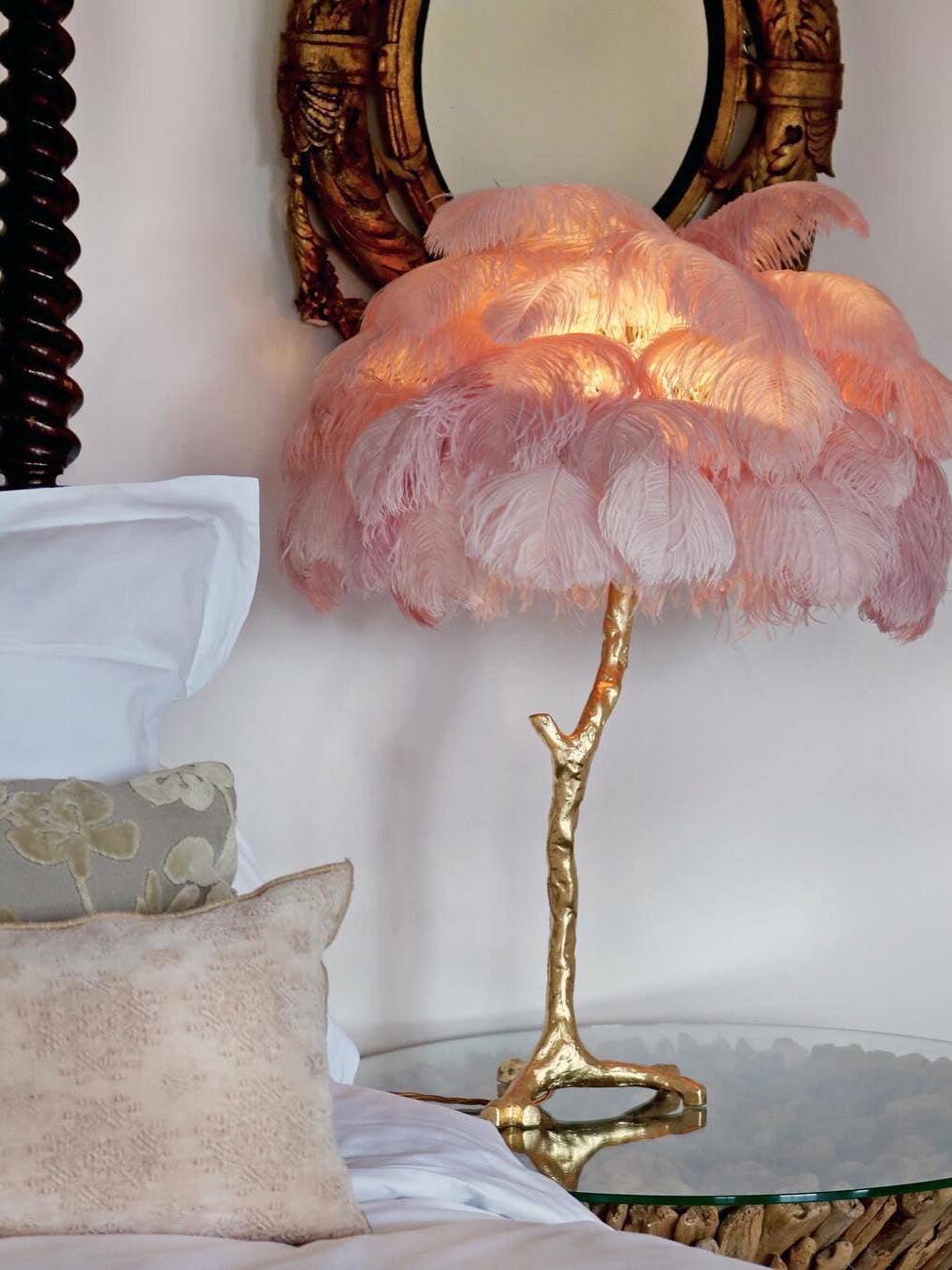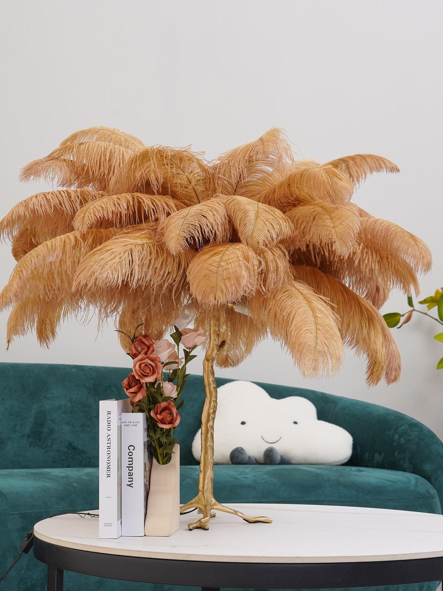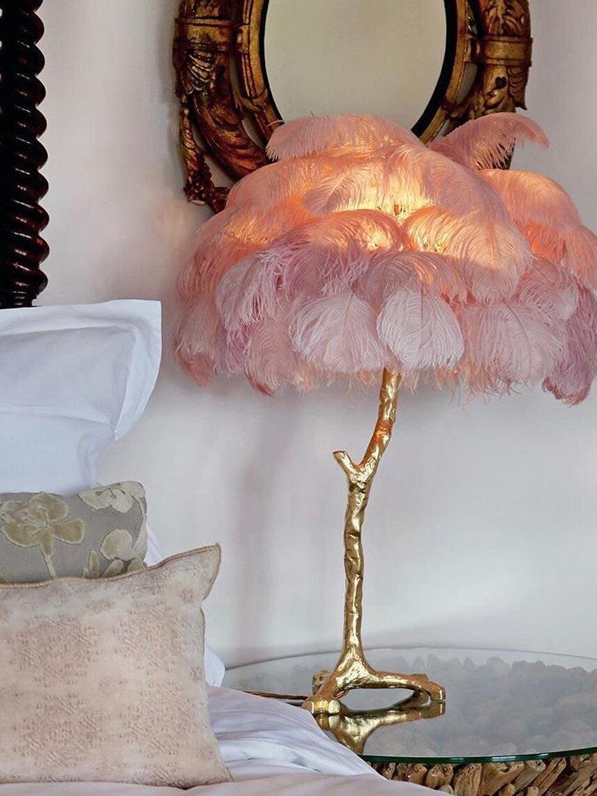 An illuminating palm tree, resplendent with exquisite ostrich feather foliage, the feather table lamp takes centre stage in any luxury setting and delivers the ultimate midas touch to Hollywood regency decors. this lighting work of art commands attention to its exquisite design and intricate craftsmanship.
