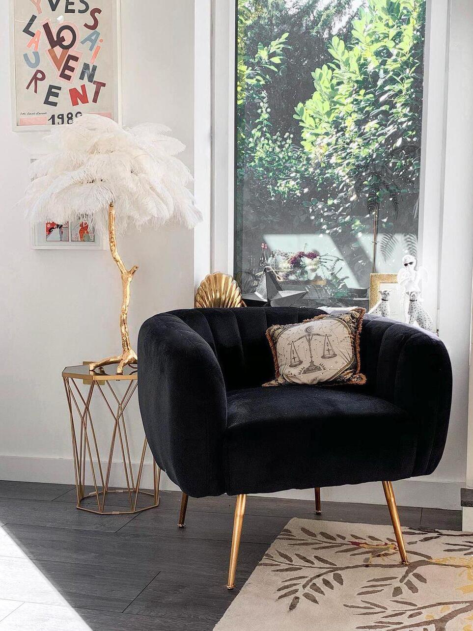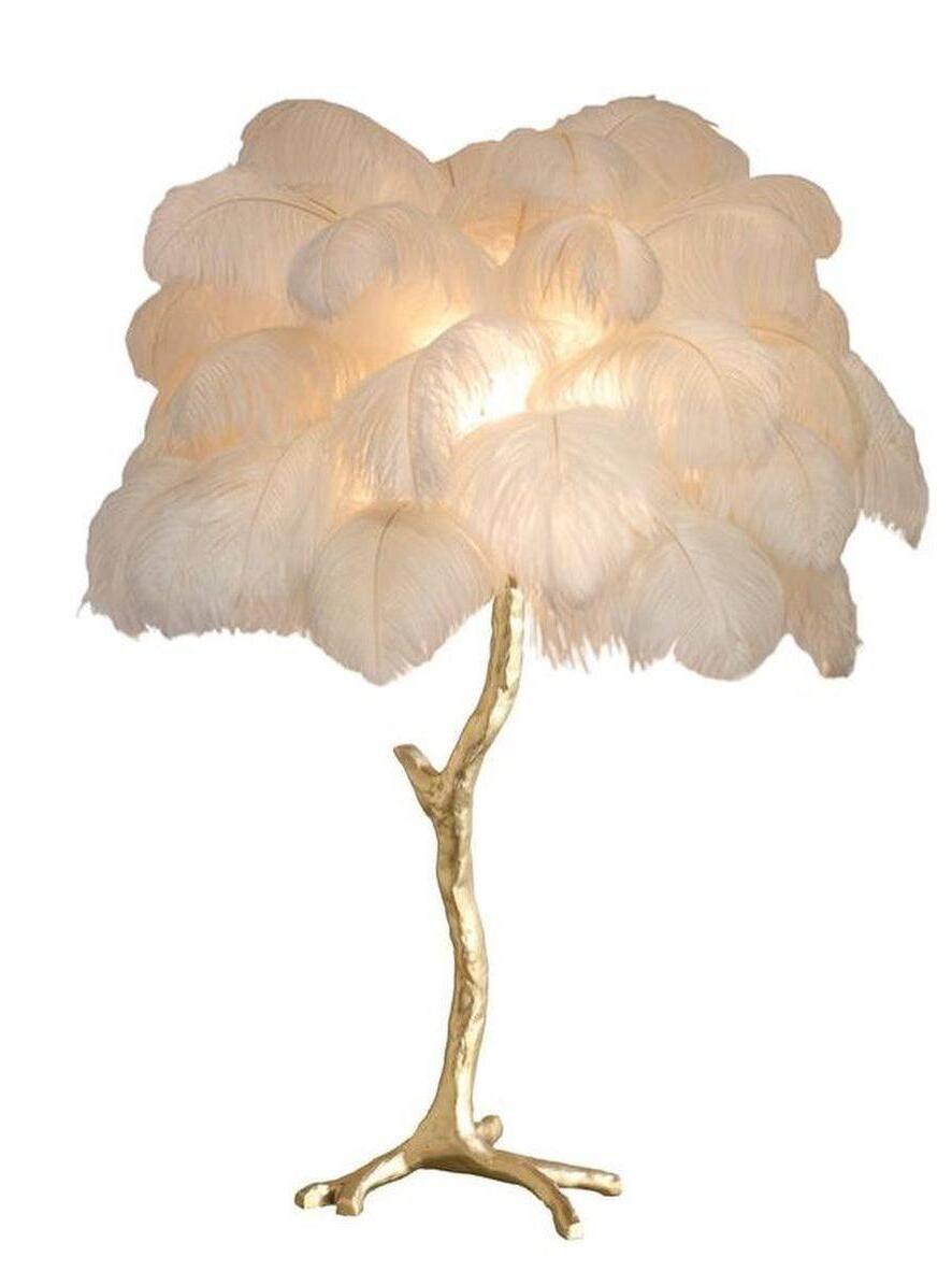 As part of our exclusive feather lamp series, our feather table lamps are finished with ostrich feathers and brass metal base.