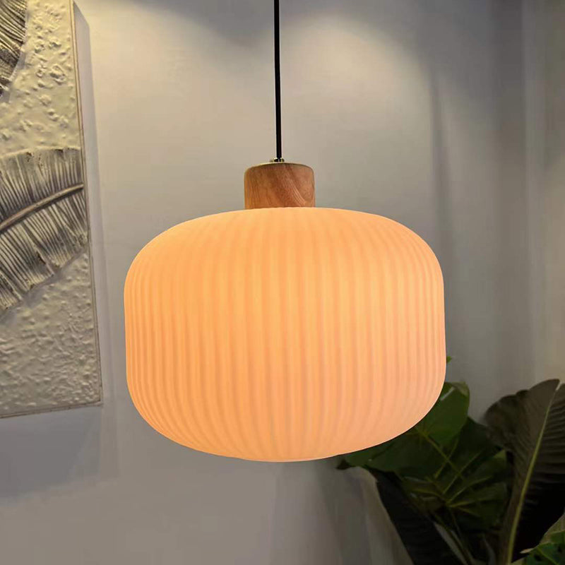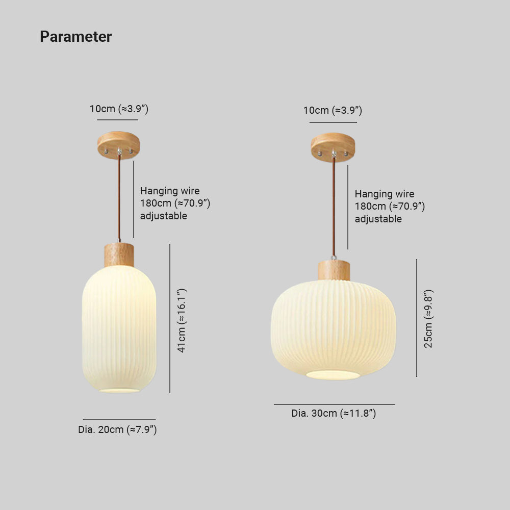 - The wood and glass pendant light come in two shapes, you can choose between long or short cylinders depending on preference.
