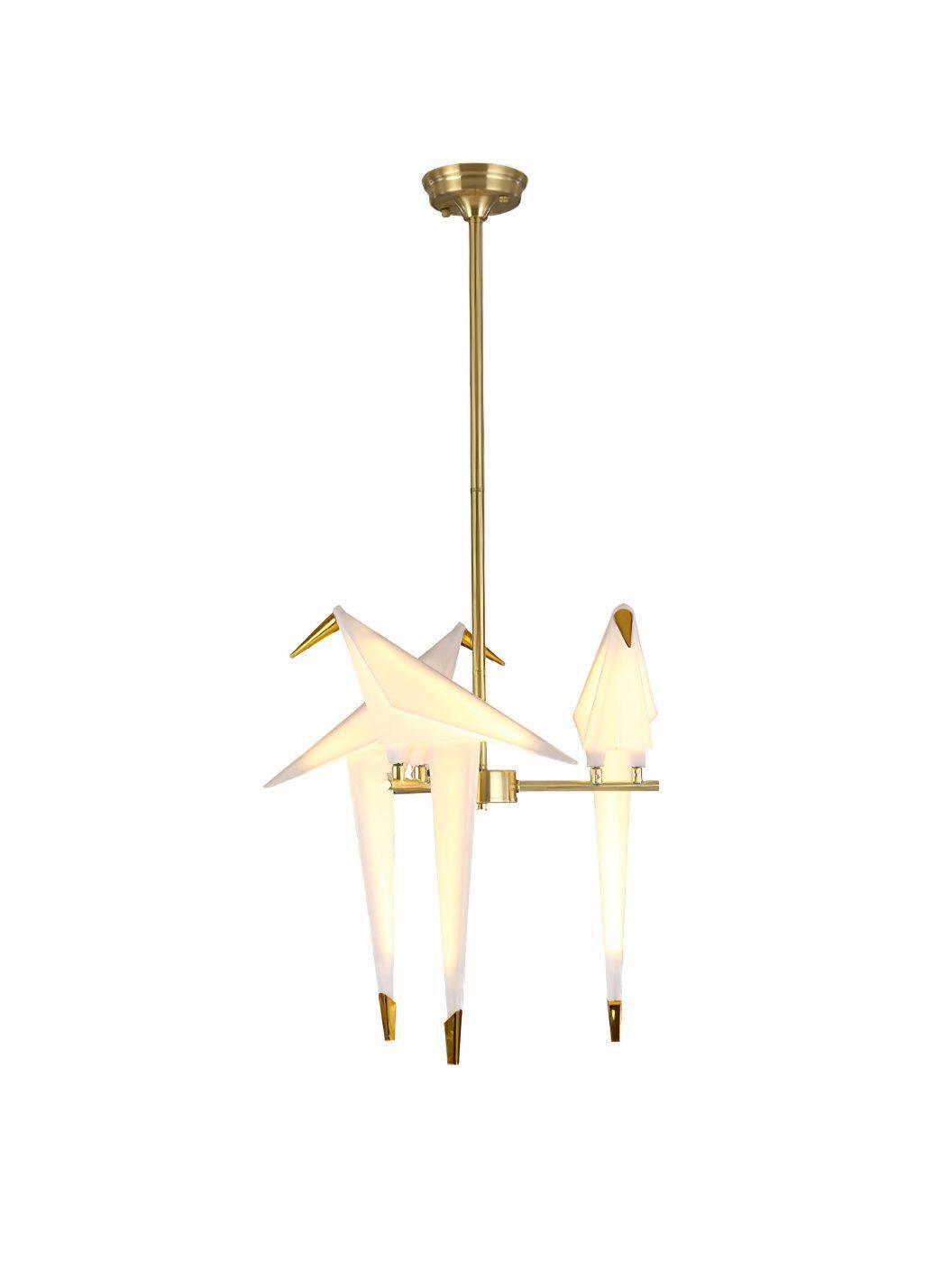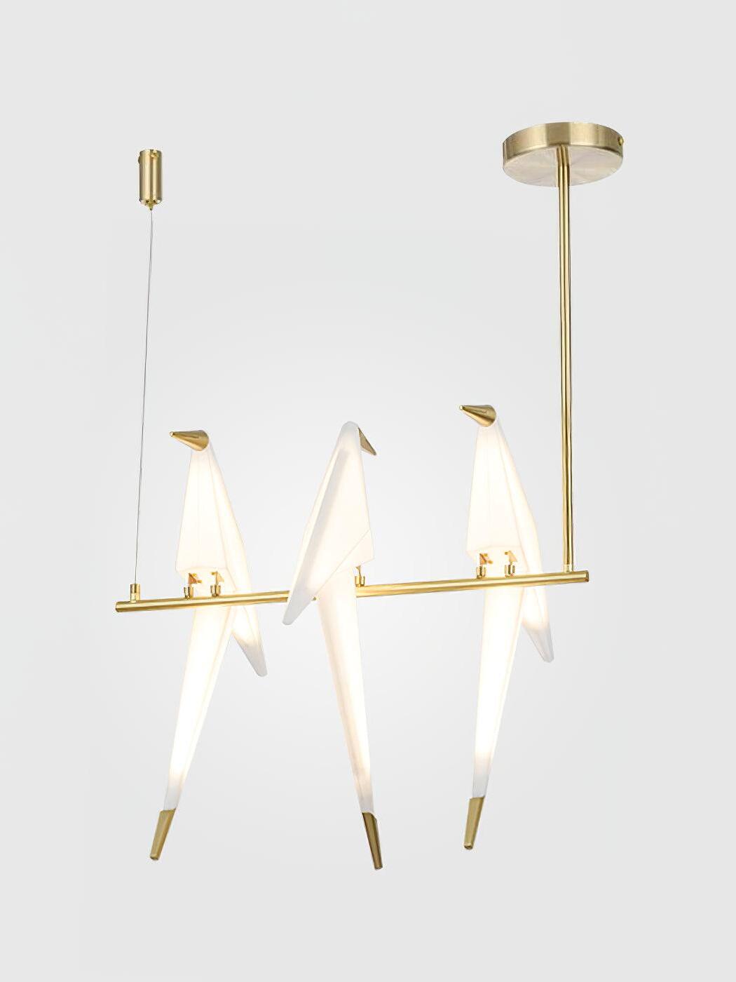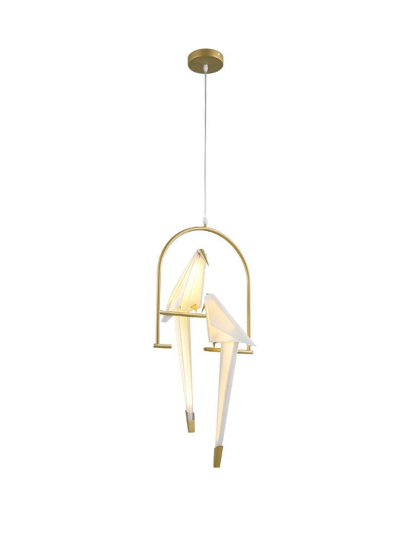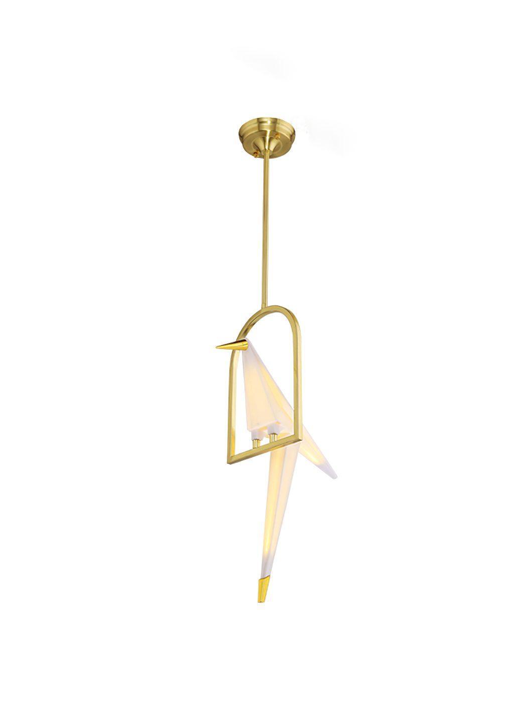 A family of sculptural lamps celebrates the beauty and poetry of a bird perched on a branch, rocking darkness away when set in motion. Crafted from the paper in the form of an abstract bird sitting on a branch, these sunlit birds are free to swing when softly touched, gently glowing and bringing along the promise of spring.