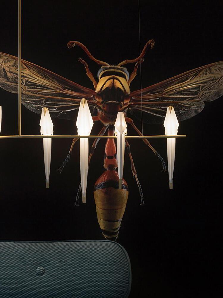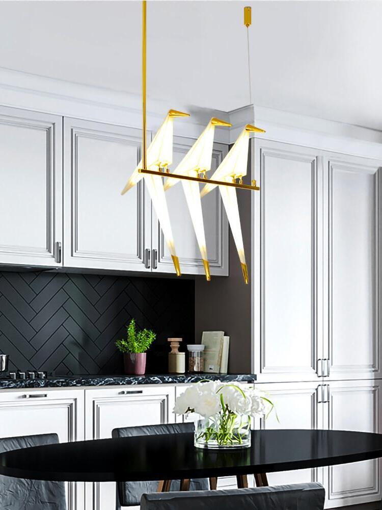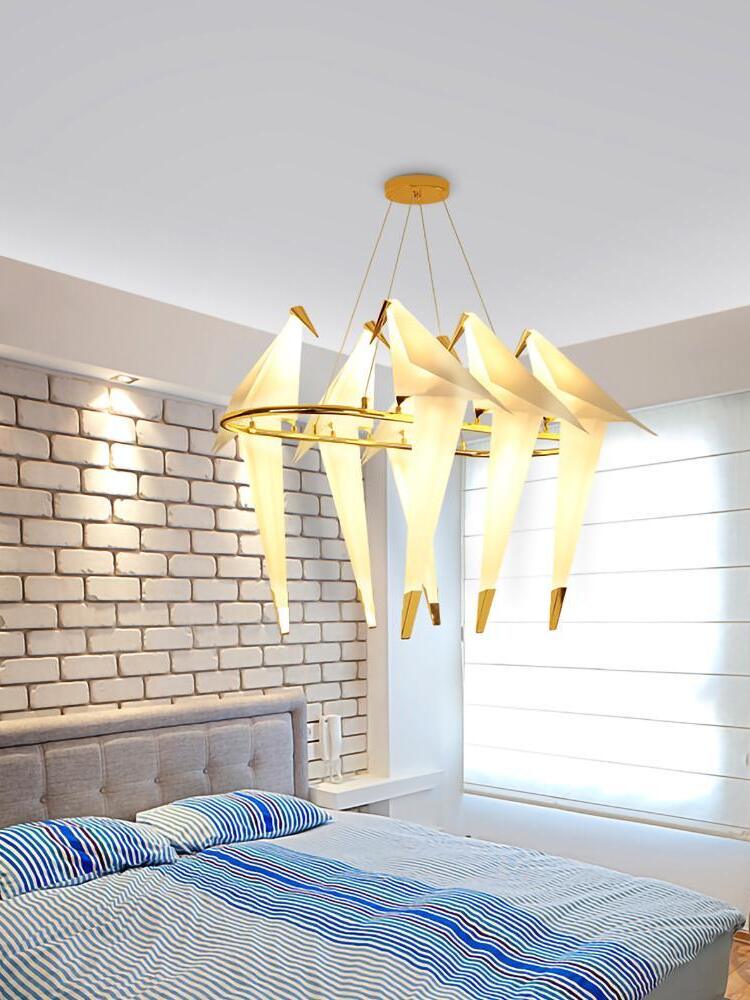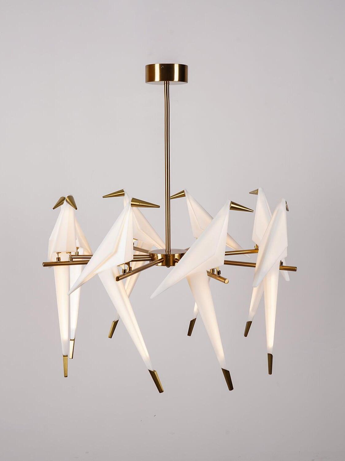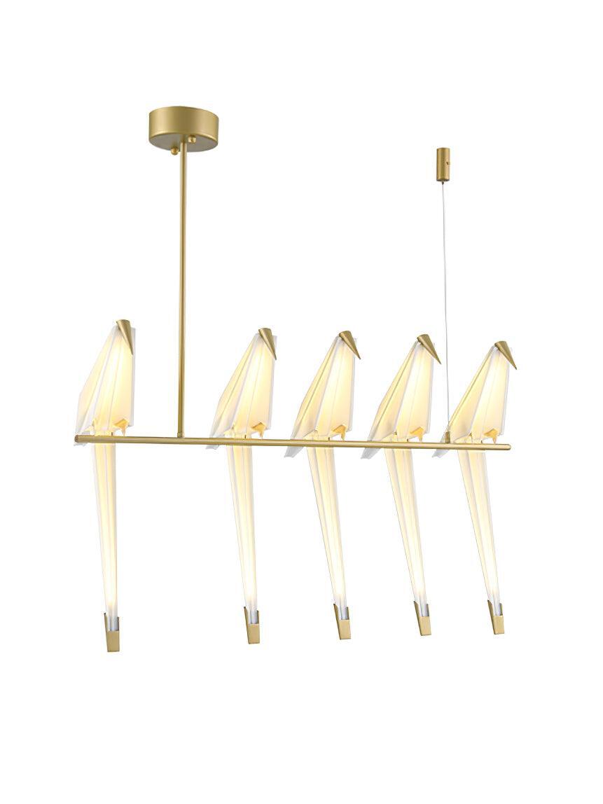 A family of sculptural lamps celebrates the beauty and poetry of a bird perched on a branch, rocking darkness away when set in motion. Crafted from the paper in the form of an abstract bird sitting on a branch, these sunlit birds are free to swing when softly touched, gently glowing and bringing along the promise of spring.