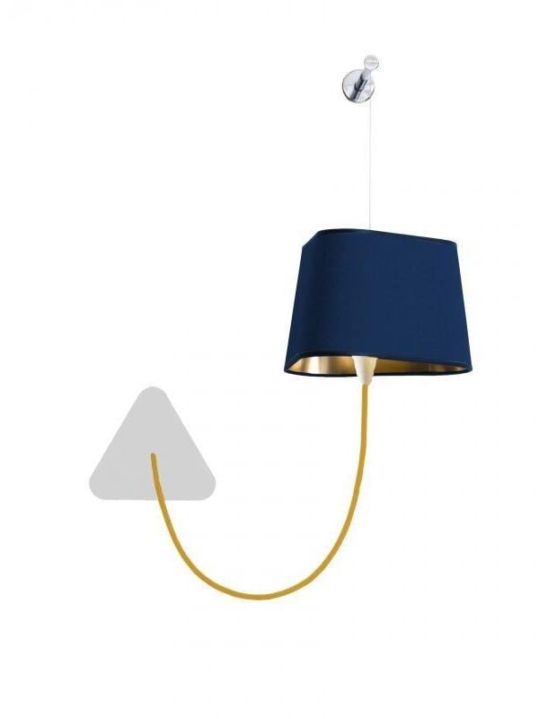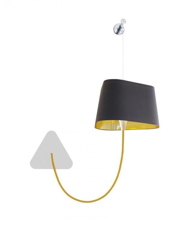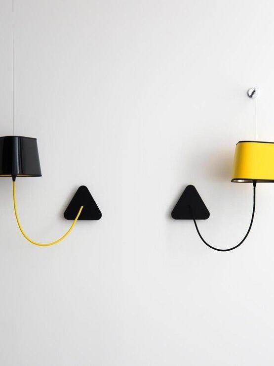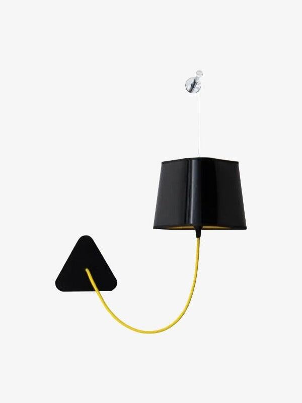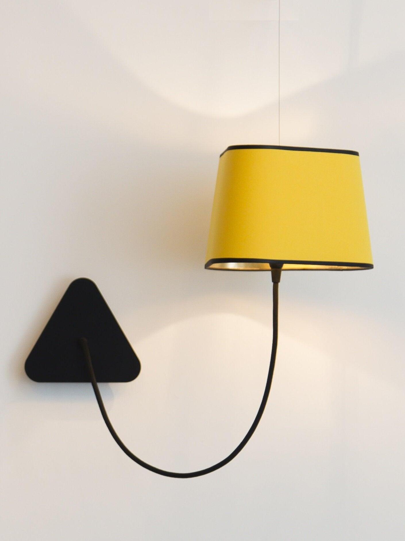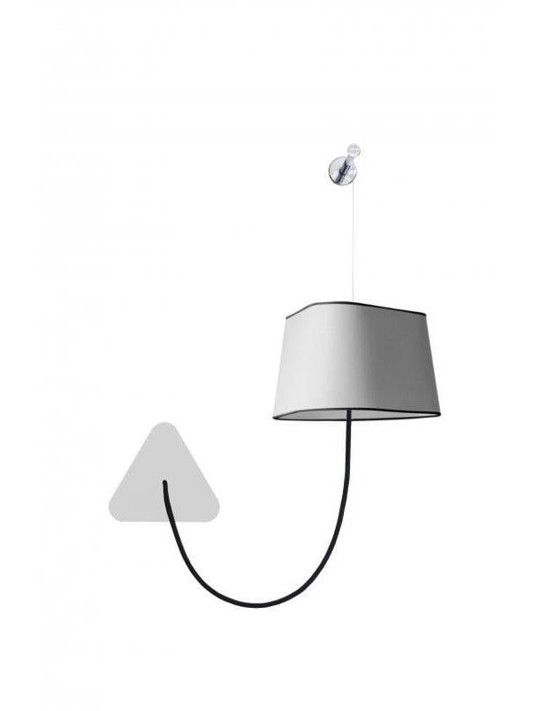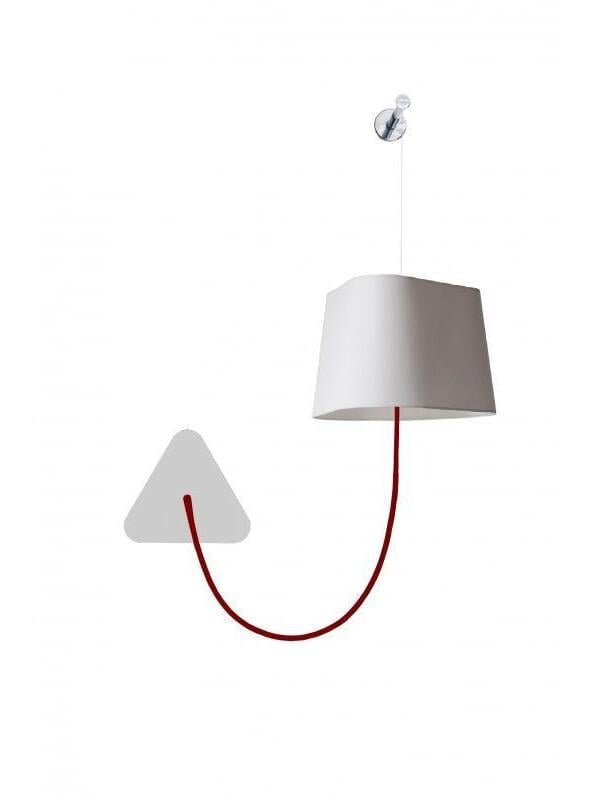Kleine Wandleuchte bestehend aus einem Lampenschirm, einem geflochtenen Stromkabel und einer Deckenbefestigung sowie einem verstellbaren Aufhängungskabel aus Stahl. Einfachheit und Reinheit der Linien sind die Schlüsselwörter für diese praktische und modulare Wandleuchte. Der dreieckige Lampenschirm erzeugt ein ganz besonderes Licht und durchschneidet den Raum auf architektonische Weise. Sein Vorteil: Flexibilität bei der Wahl des Standorts dank der Modularität seiner Höhe.
