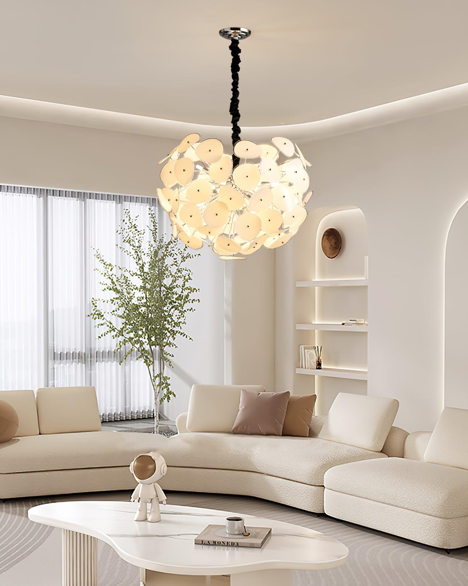 The Poppy Glass Chandelier will add elegance and grandeur to any room in your home. Boasting beautiful poppy glass globes, this chandelier exudes sophistication and luxury. With its intricate design, this chandelier is the perfect finishing touch for a modern or classic interior. Add some splendor to your décor with the Poppy Glass Chandelier.