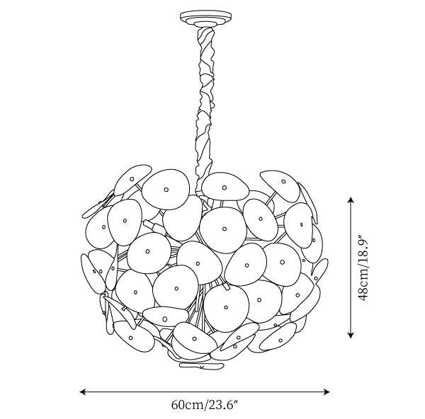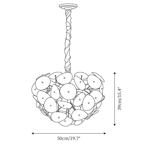 Hanging chain 50cm / 19.7″. The length of the suspension chain can be changed as required