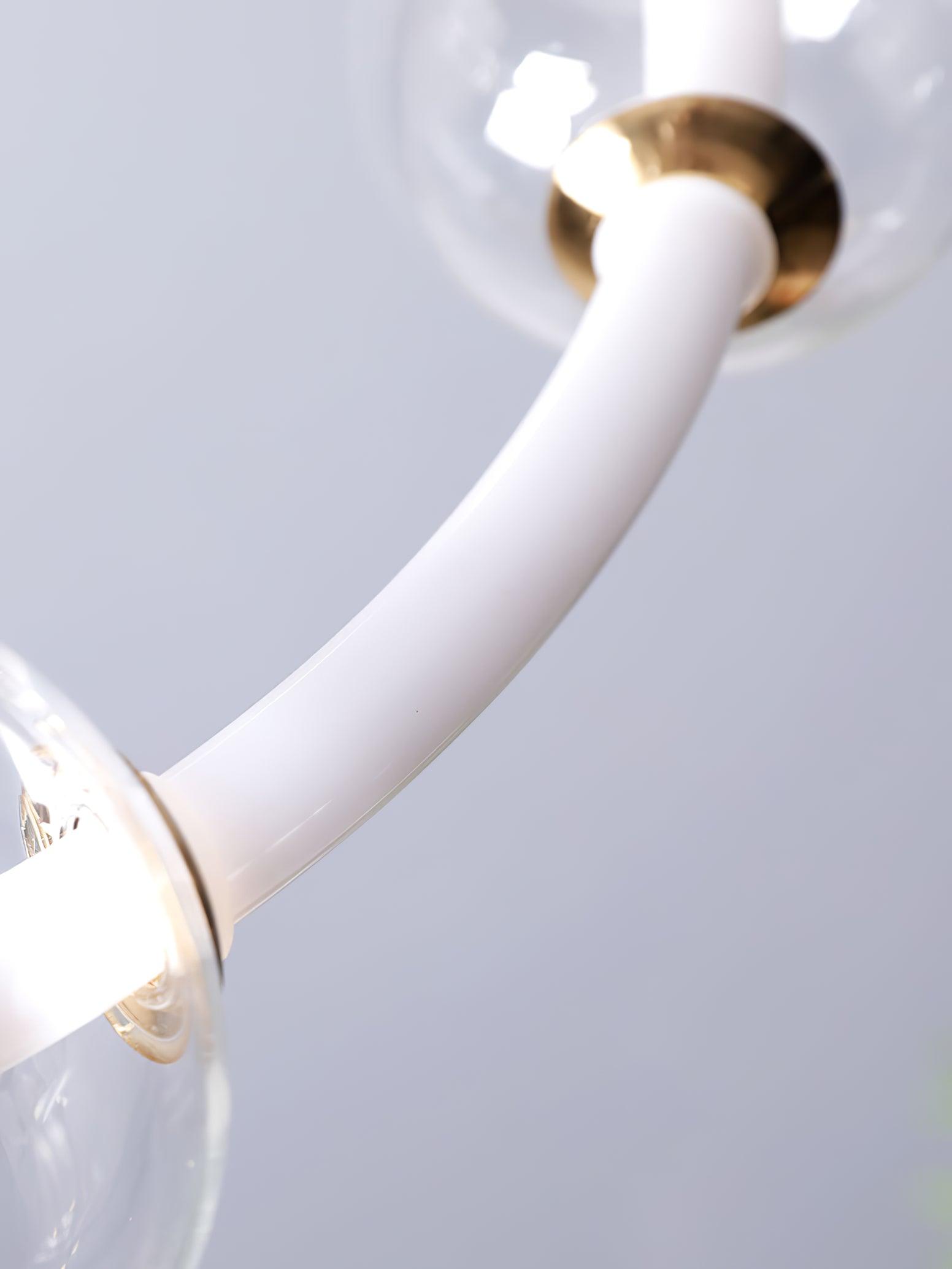 Puppet ring is made of mouth-blown glass and a ring-like frame, donating a contemporary elegance. The frame comes in white acrylic, and the glass shades in clear.