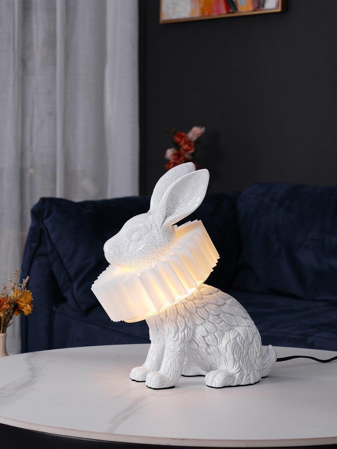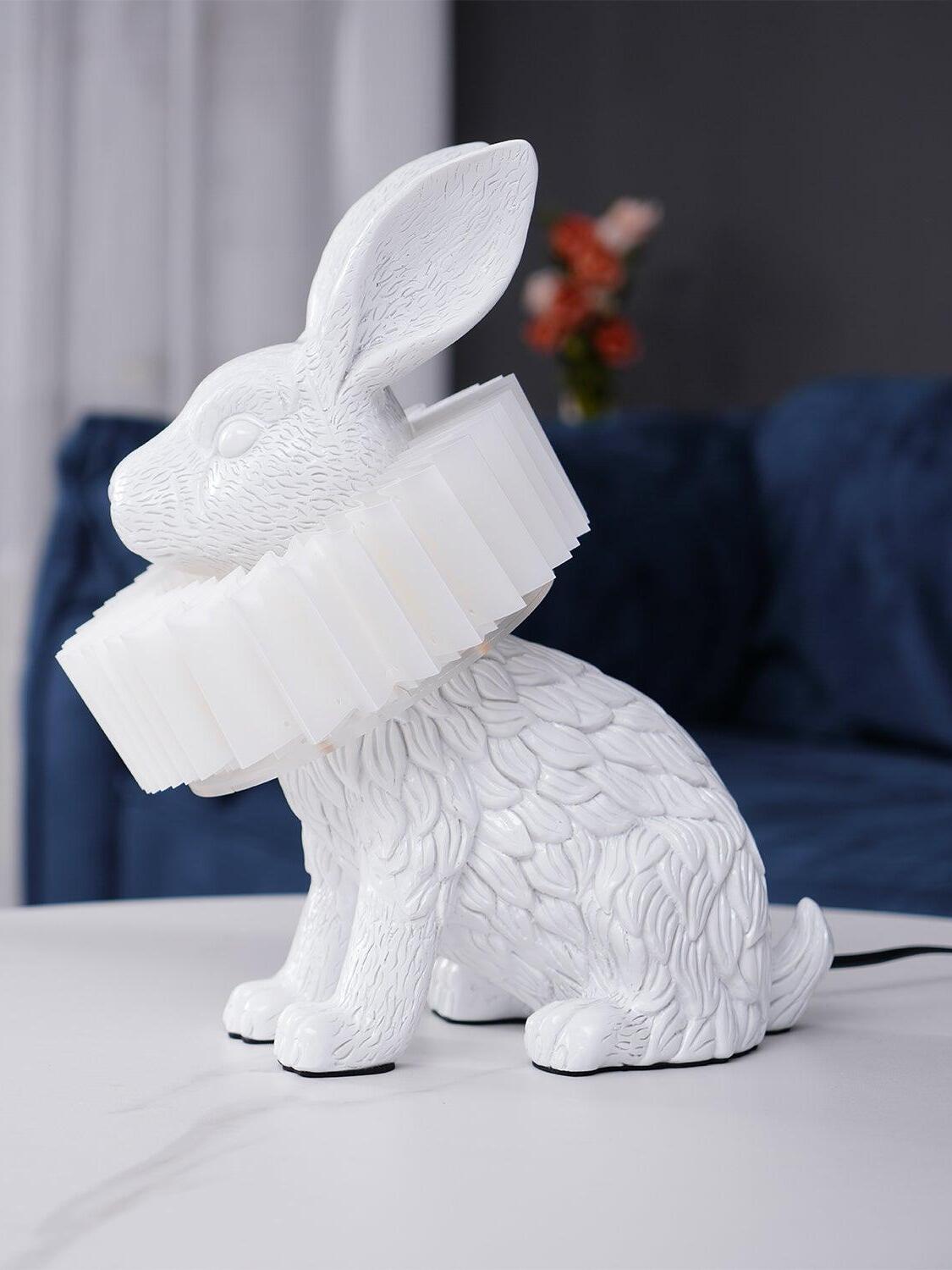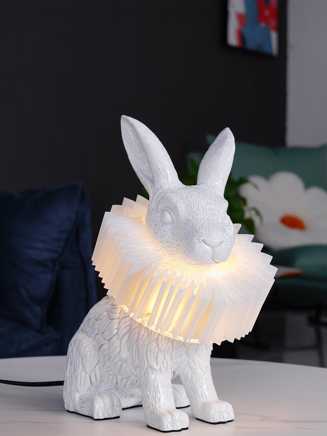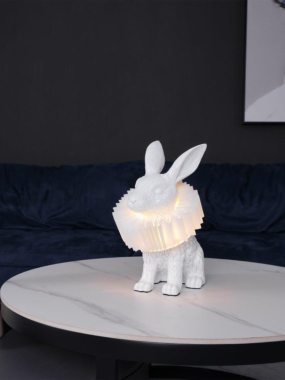 White Resin Rabbit Decorative Table Lamp