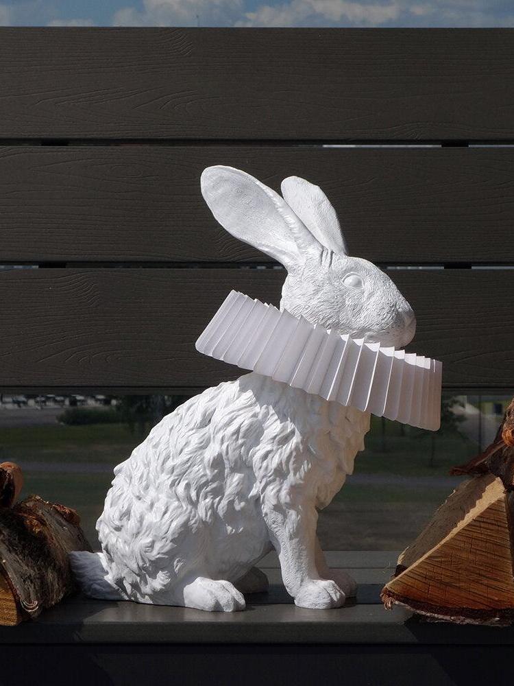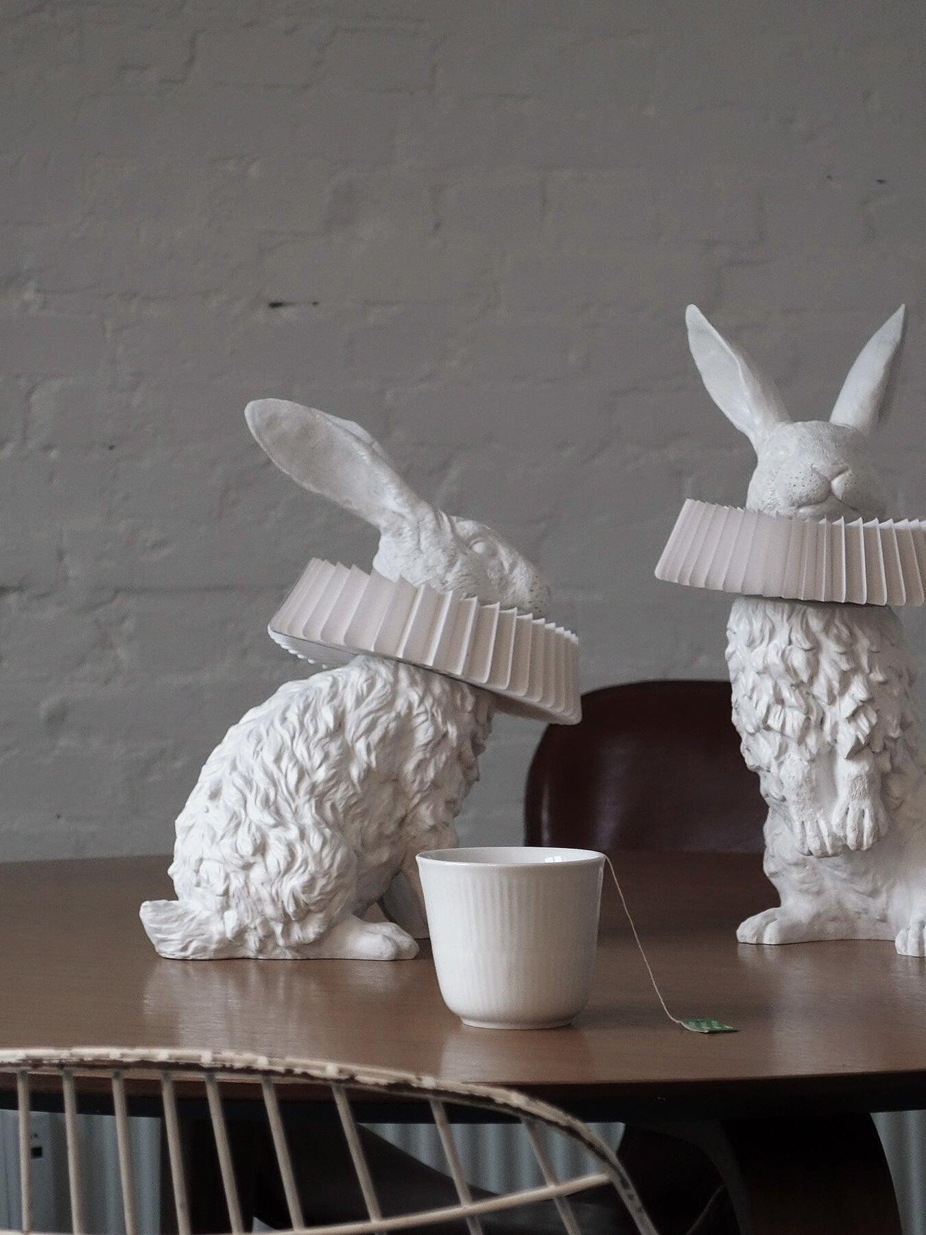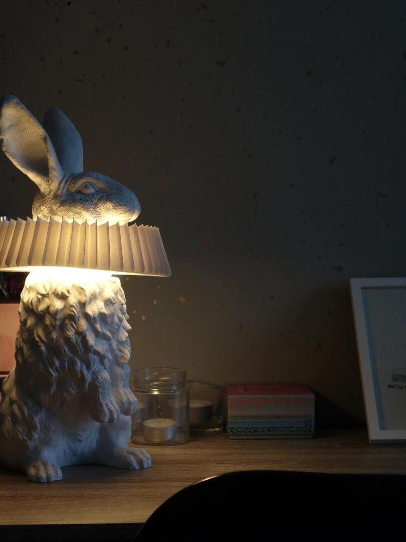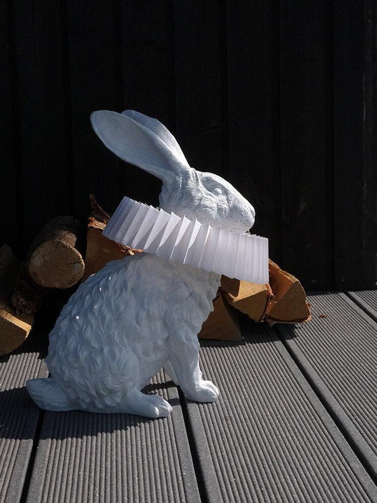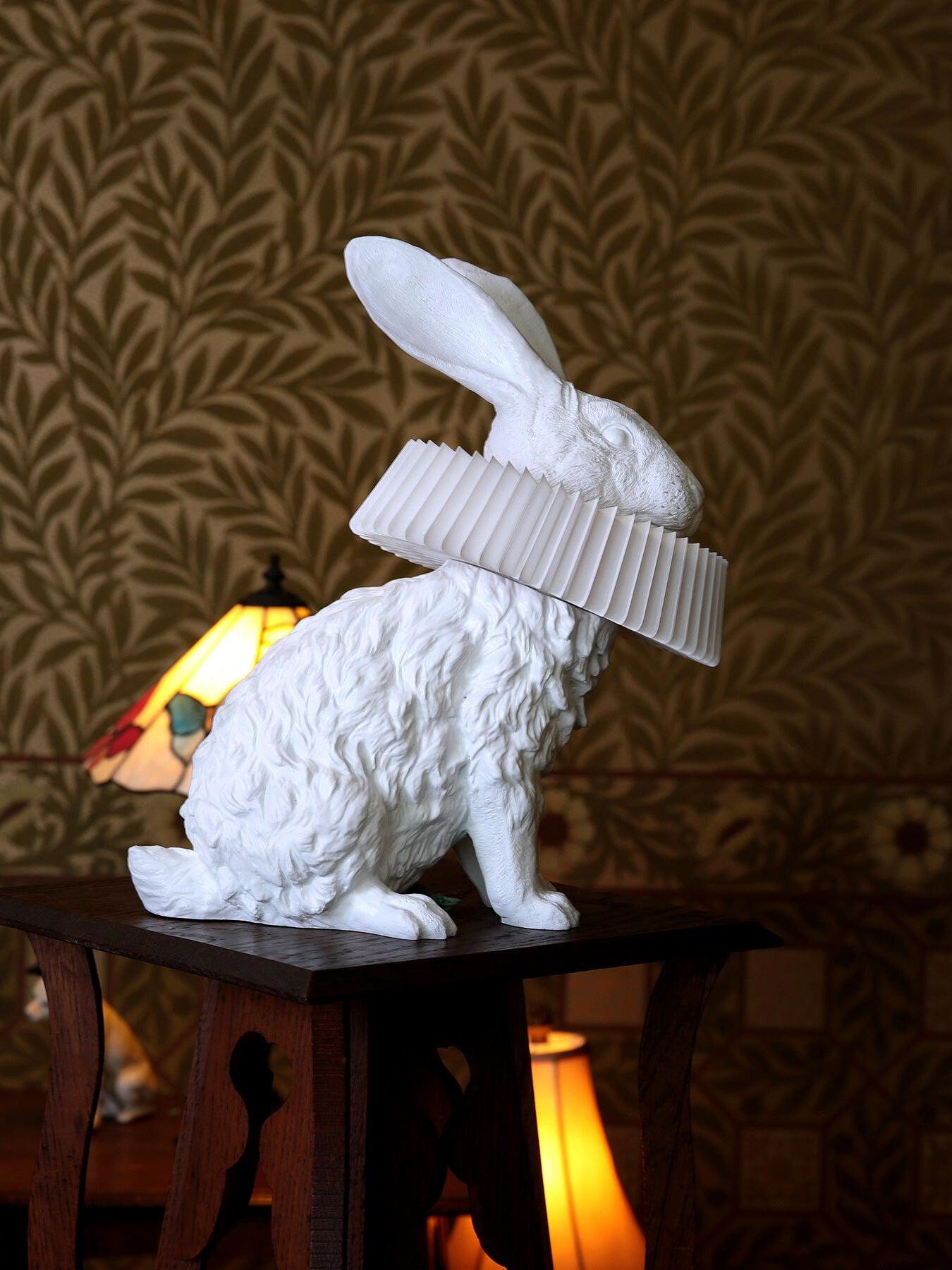 White Resin Rabbit Decorative Table Lamp
