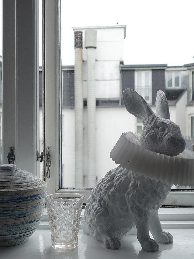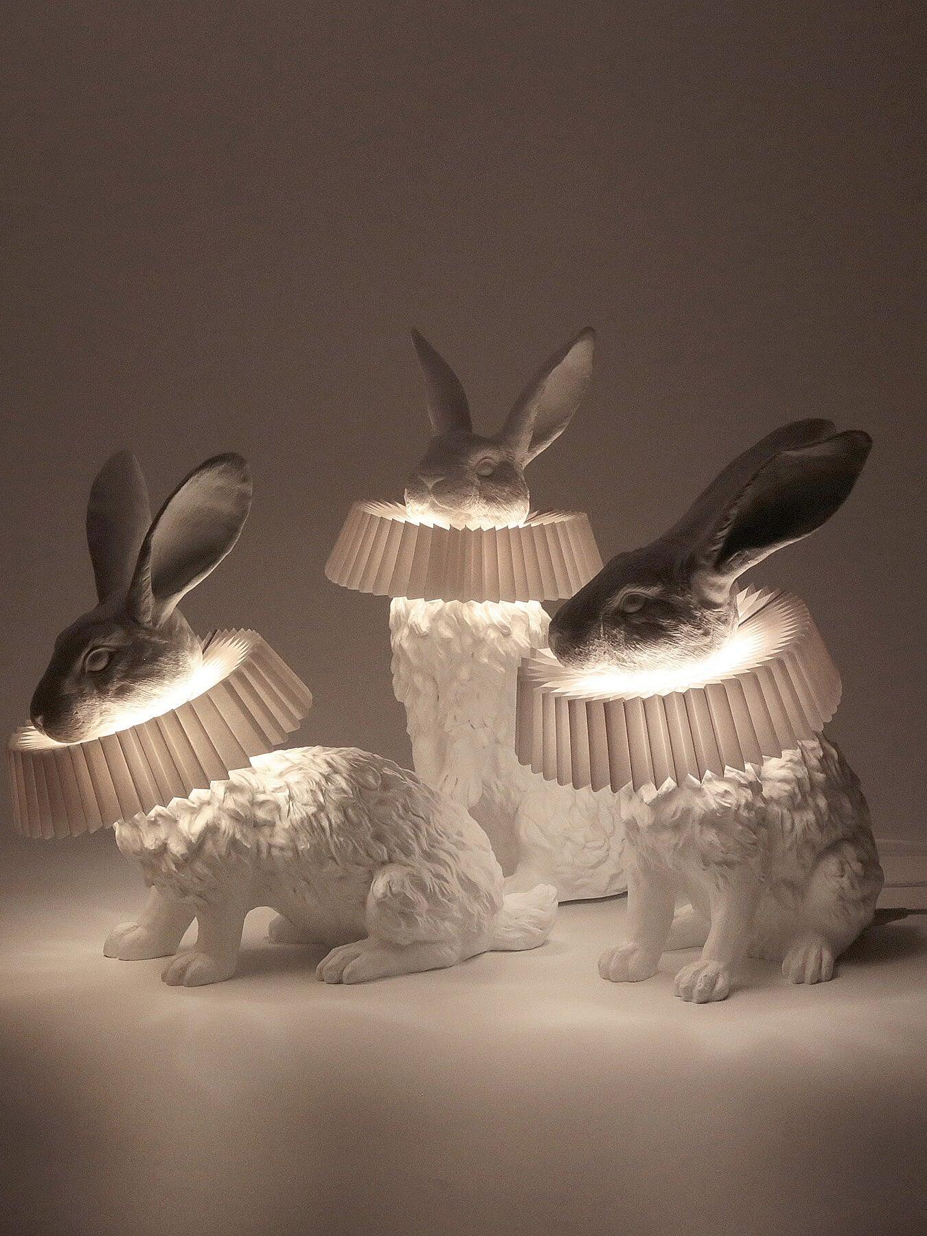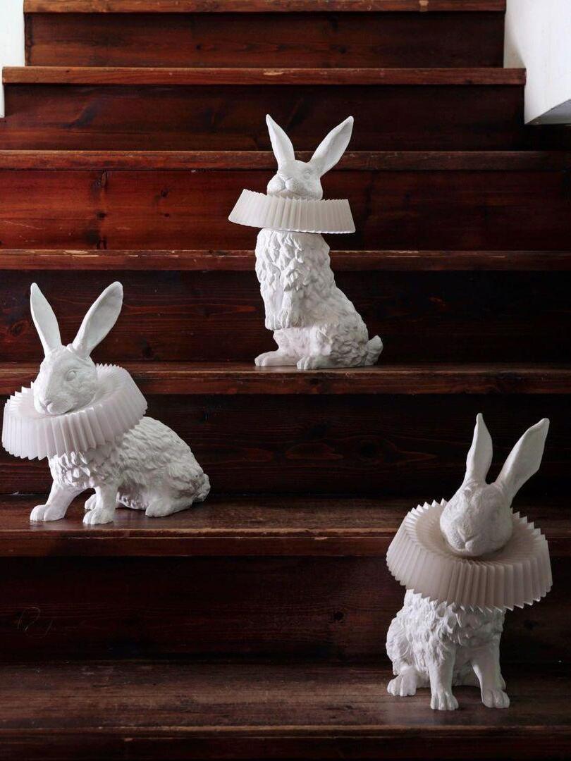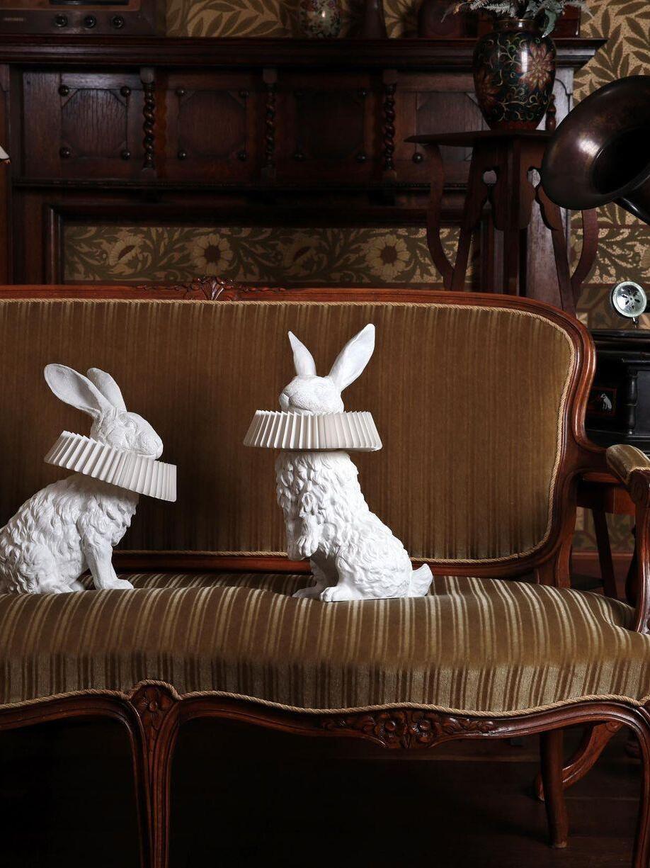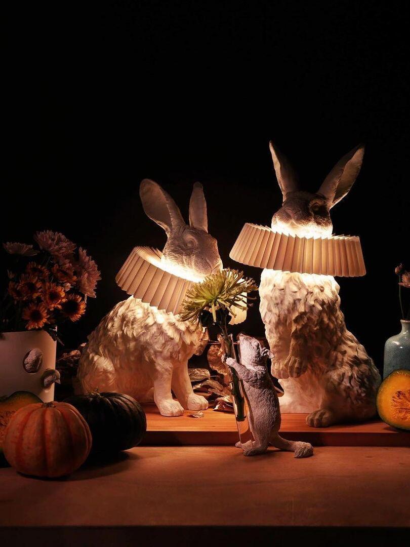 White Resin Rabbit Decorative Table Lamp