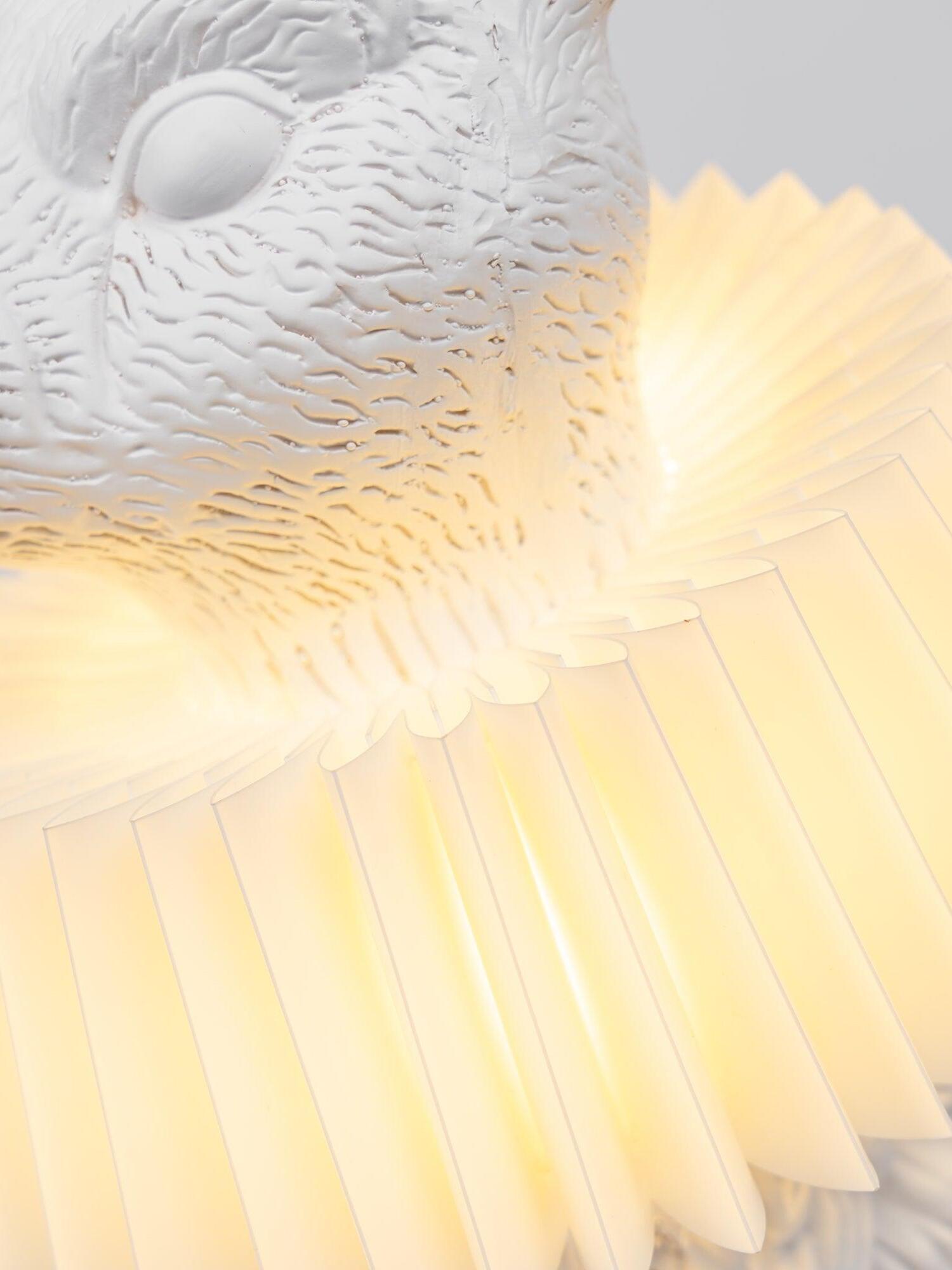 The white finish exudes a sense of purity and sophistication, making it a versatile piece that seamlessly complements various interior styles. Whether placed on a bedside table, adding a soft glow to your reading nook, or adorning a cozy living room, this lamp creates a captivating ambiance, infusing your space with a delightful sense of whimsy.