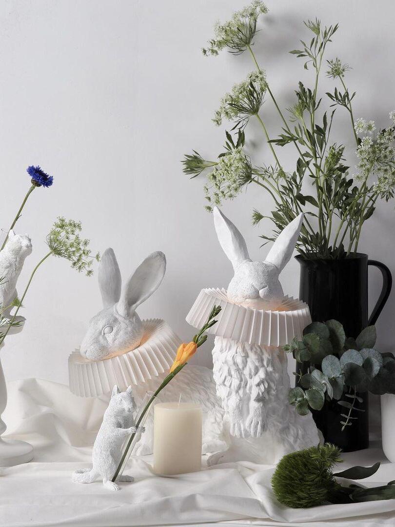 The White Resin Rabbit Decorative Table Lamp is a whimsical blend of contemporary design and enchanting charm. This exquisite table lamp features a meticulously crafted resin rabbit base, adding a touch of playful elegance to any space.