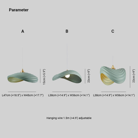 - The Renée Wabi-Sabi Minimalisme Ripple Pendant Light boasts a distinct and intriguing shape—a round wave. This unique design is reminiscent of the gentle undulations found in nature, creating a sense of harmony and tranquility in your living space. The round wave shape of the lampshade not only adds visual interest but also serves to diffuse light evenly, creating a soft and ambient illumination. It complements various interior styles, from modern and minimalist to vintage and eclectic, making it a versatile choice for any room in your home or office.
