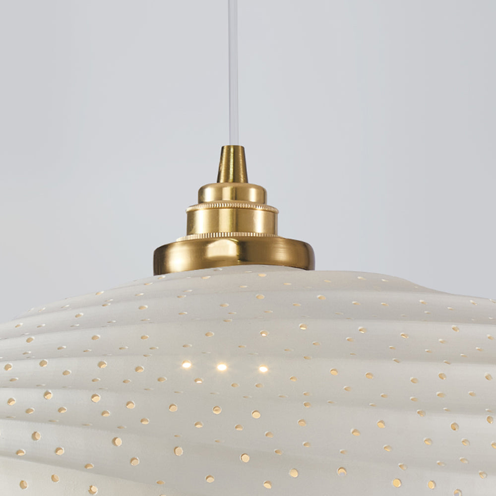 - The Renée Wabi-Sabi Minimalisme Ripple Pendant Light allows you to infuse your space with your preferred color scheme. Choose from the elegant simplicity of white, the intricate allure of white cutout, the soothing charm of beige, the refreshing vitality of green, or the regal mystique of purple. Each color option is carefully curated to suit a variety of interior design preferences. The white variant exudes purity and minimalism, perfect for those who appreciate timeless elegance. The white cutout version adds a touch of intricacy and detail, creating a captivating play of light and shadow. Beige offers warmth and neutrality, making it an ideal choice for creating cozy, inviting atmospheres. Green brings the outdoors inside, infusing your space with a sense of vitality and serenity. Lastly, purple lends an air of opulence and sophistication to any room.
