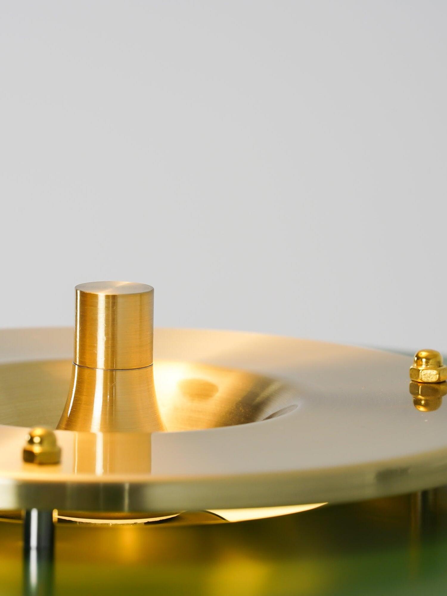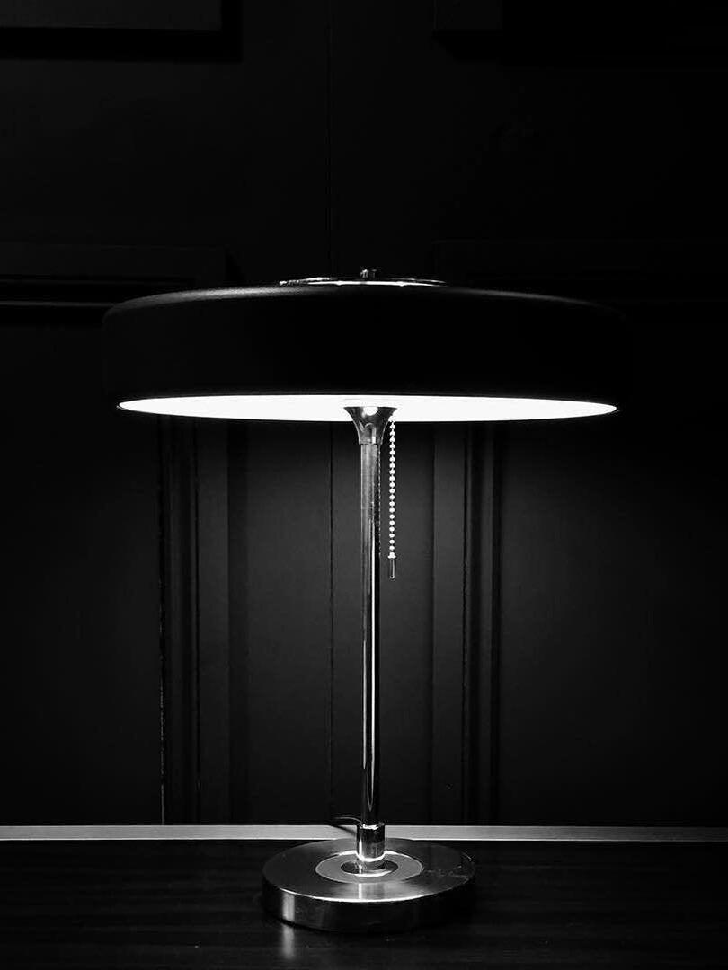 Revolve Table Lamp throw away culture we live in today, with contemporary lighting built to last. Each piece will age and mature with you. Any knocks and scratches will only add to its patina and story. Revolve Table Lamp is a striking light offering a warm glow to any surface through its opal diffuser. Light escapes through the top iron feature to highlight the sleek metal shade.