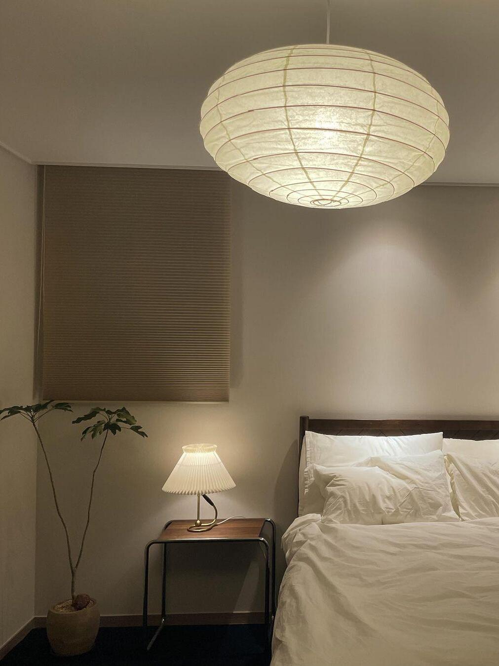 The Akari lights are handcrafted of translucent washi paper that is made from the inner bark of the mulberry tree. Designer has compared the light of Akari to sunlight filtered through traditional paper doors – the light sculptures create a warm glow and pleasant ambience.