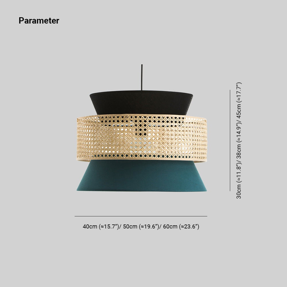 Ritta Retro Rattan/Fabbric Pendant Light, Dark Green
