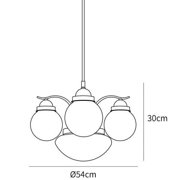The Ryttenberg Chandelier has a retro chic look with classic globe shape in a White glass. The Copper plated/Chrome finish showcases the richness of the lamp body. Available in a variety of glass cover finishes to add style to the fixture.