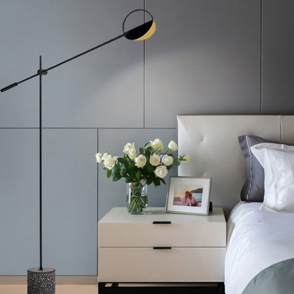 - The compact lamp base of this minimalist floor lamp has a small footprint for easy installation.