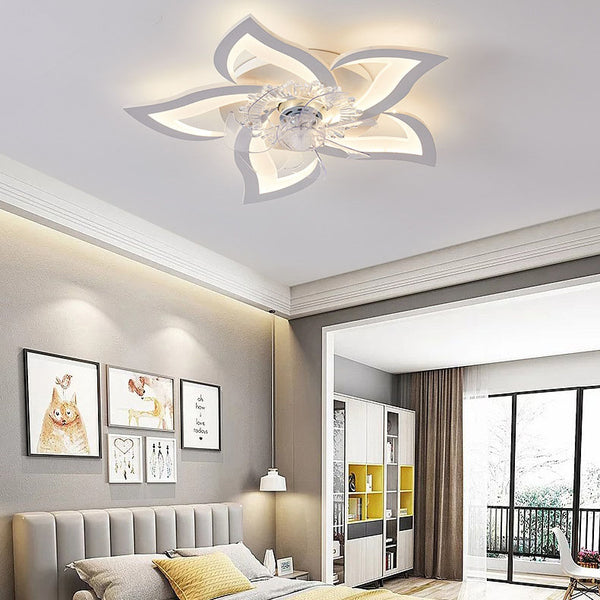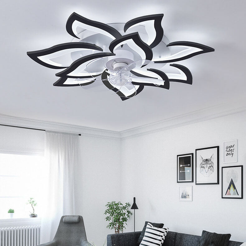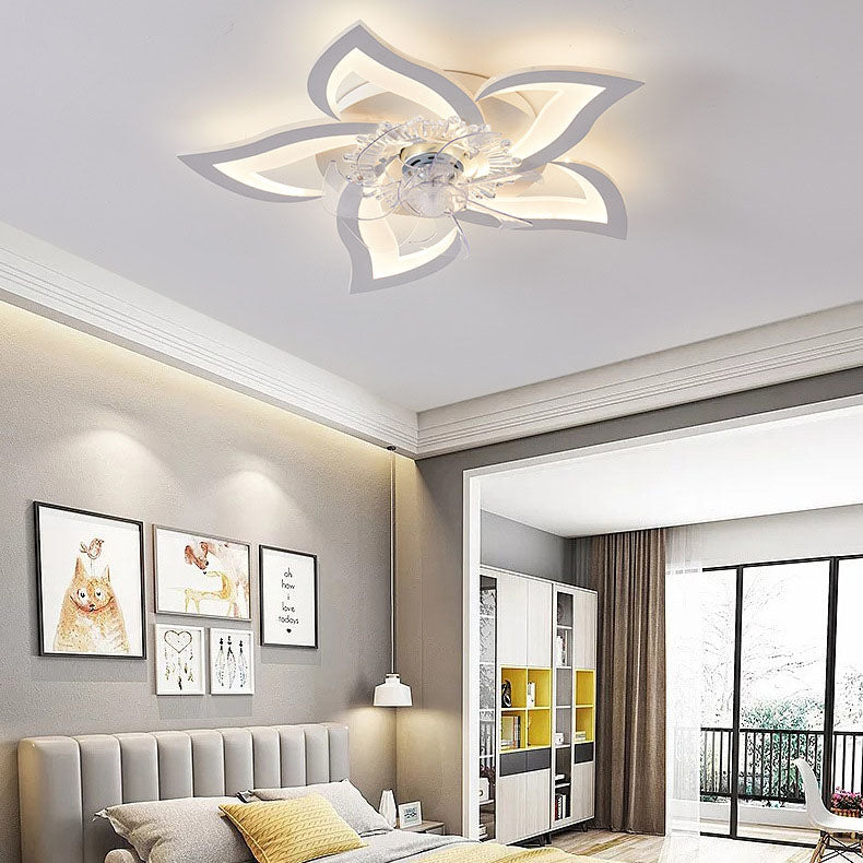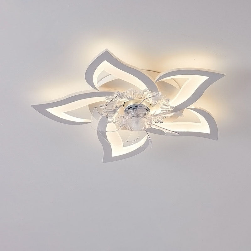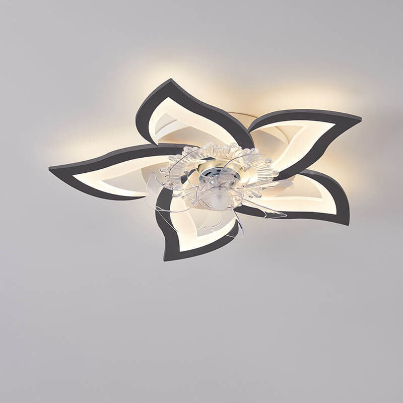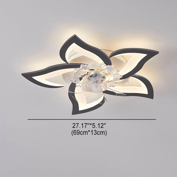 Scandinavian Modern Luxury Flower Iron Acrylic Plastic LED Flush Mount Ceiling Fan Light