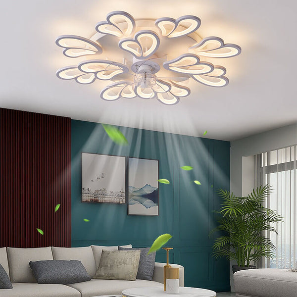 Scandinavian Modern Minimalist Heart Iron Acrylic Plastic LED Flush Mount Ceiling Fan Light