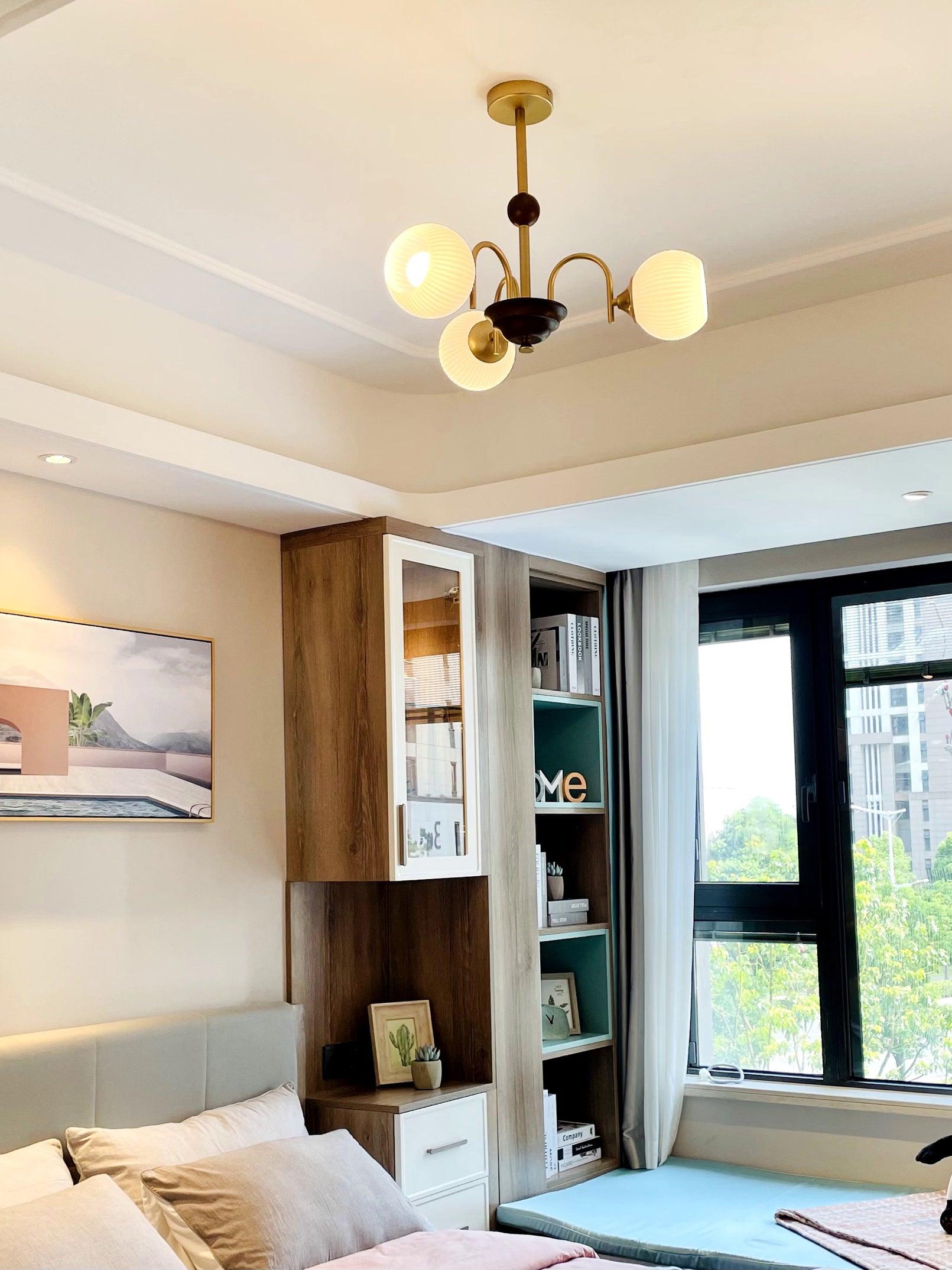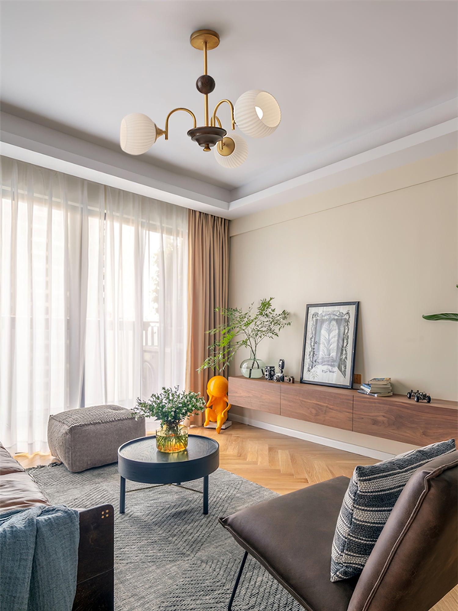 Sculptural Glass Ribbed Chandelier