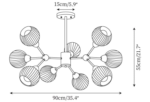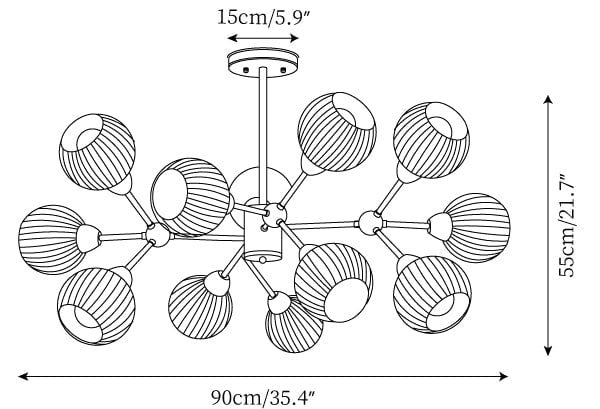 9 Heads Size: Dia 90cm x H 55cm / ∅ 35.4″ x H 21.7″