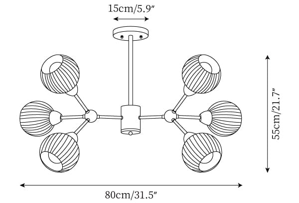 6 Heads Size: Dia 80cm x H 55cm / ∅ 31.5″ x H 21.7″