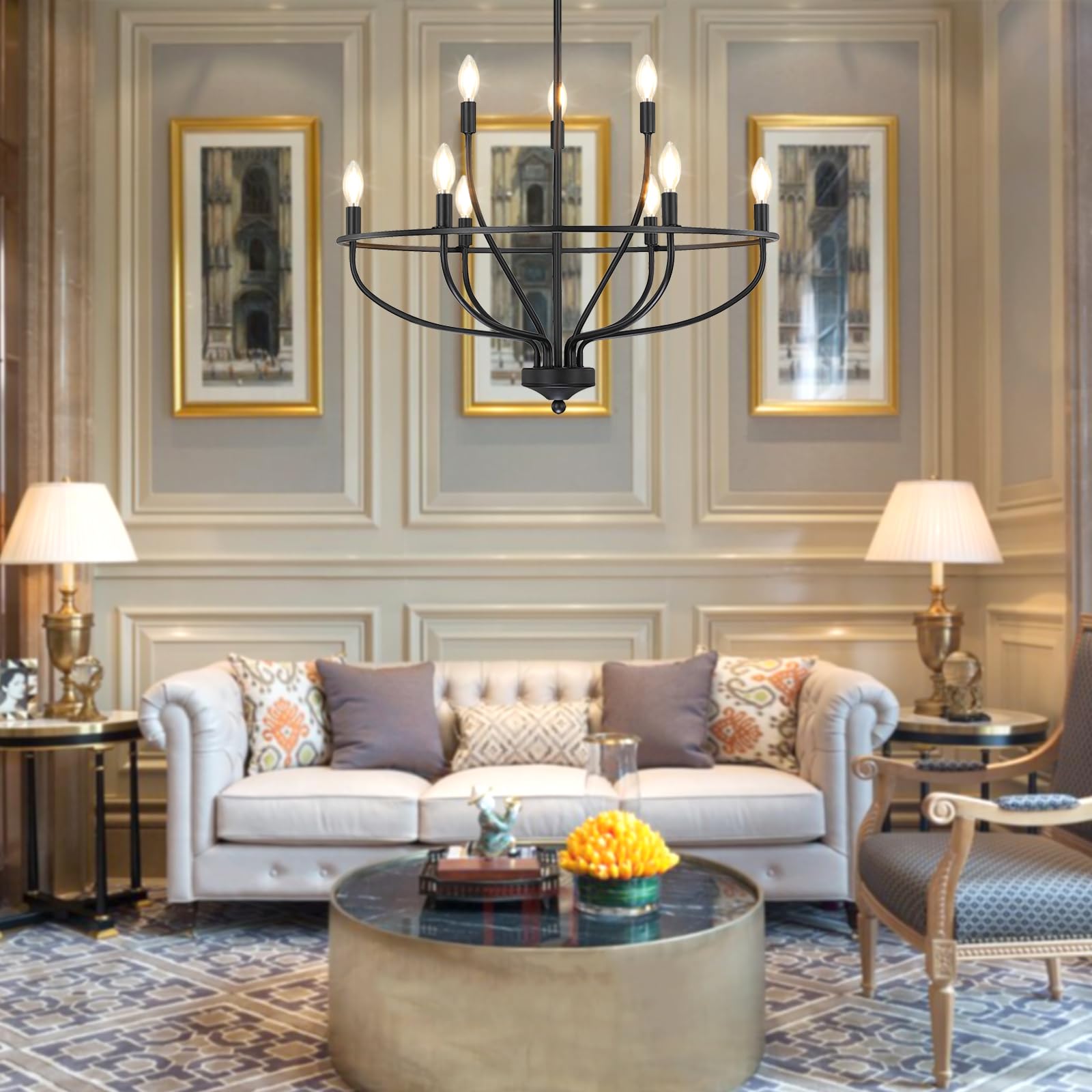 Silva Industrial Metal Candle Chandelier Black/Champagne Living Room/Bedroom